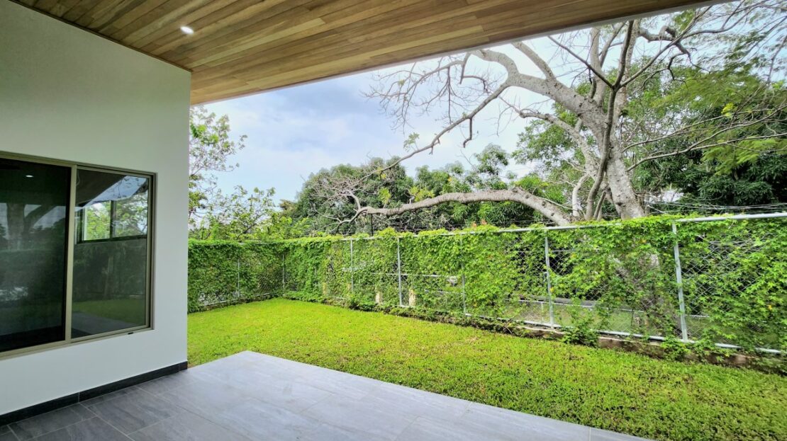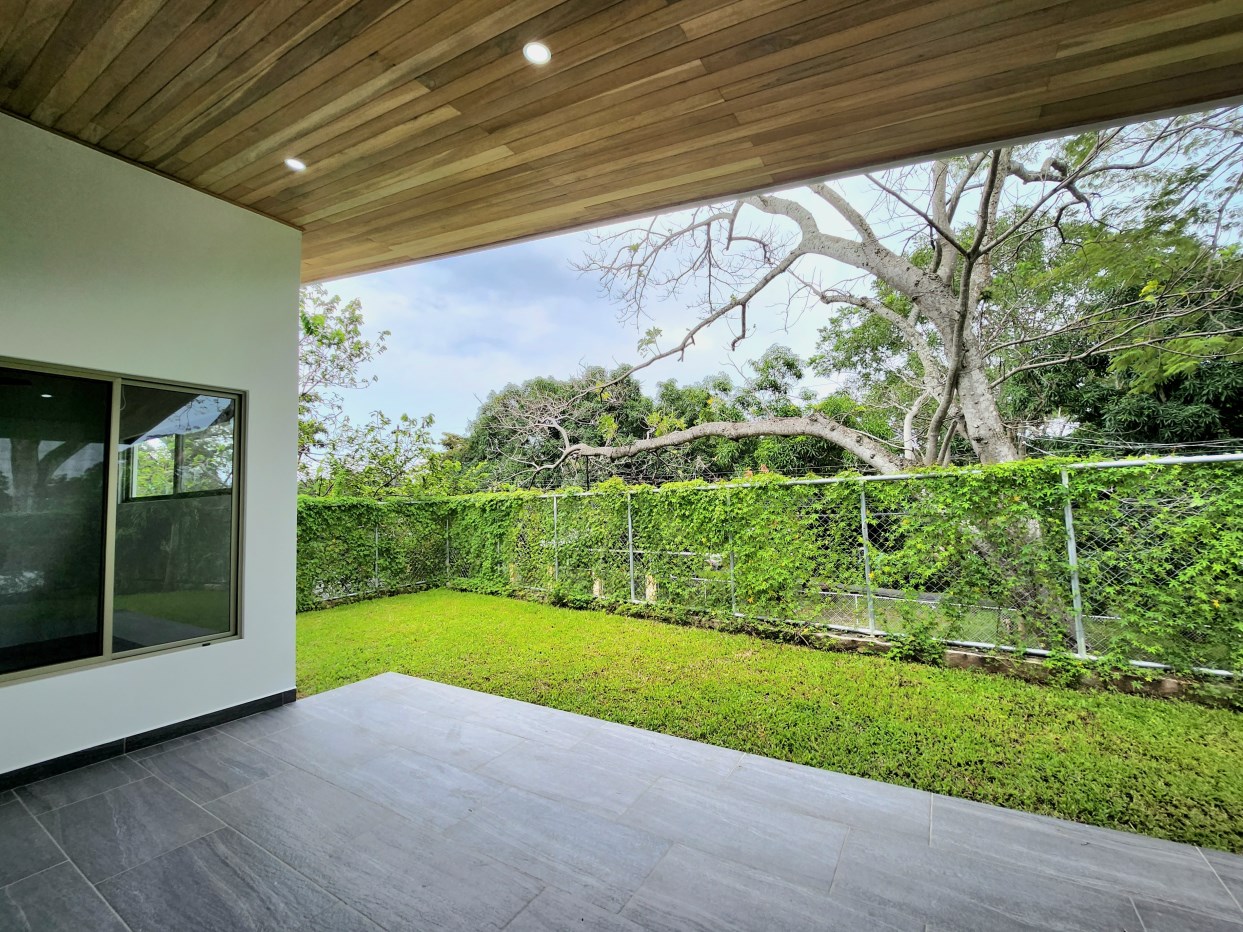 La casa esta construida en block con sobres de cocina de granito y muebles de cocina modernos. Tiene techo artesanado y abanicos de techo en todas las abitaciones. Una moderna pared iluminada adorna el centro de la casa lista para tu TV y crear una hermosa area de entrenenimiento. Tiene un amplio patio cubierto y area verde cmpletamente cercada.