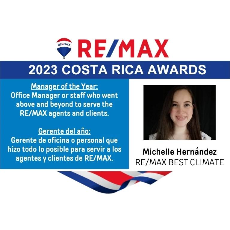 At RE/MAX Best Climate, success is more than a goal; it’s a standard that our agents constantly surpass.We are happy to announce that all of our agents have been named among the top 30 producers in the Costa Rica network for the year 2023. This outstanding result not only represents the devotion and hard work of our experienced experts, but it also highlights the strength of the RE/MAX network and the knowledge of our office’s agents.