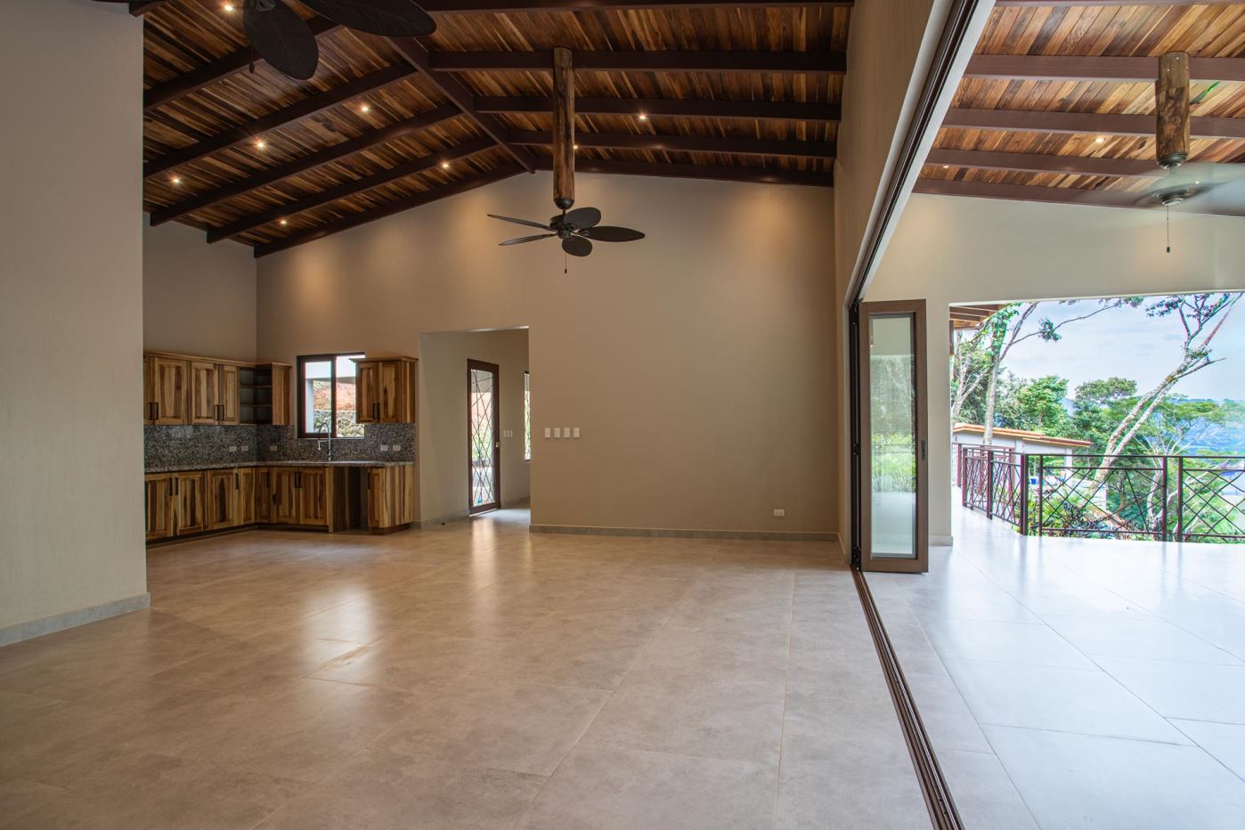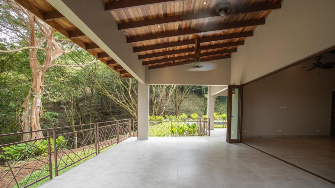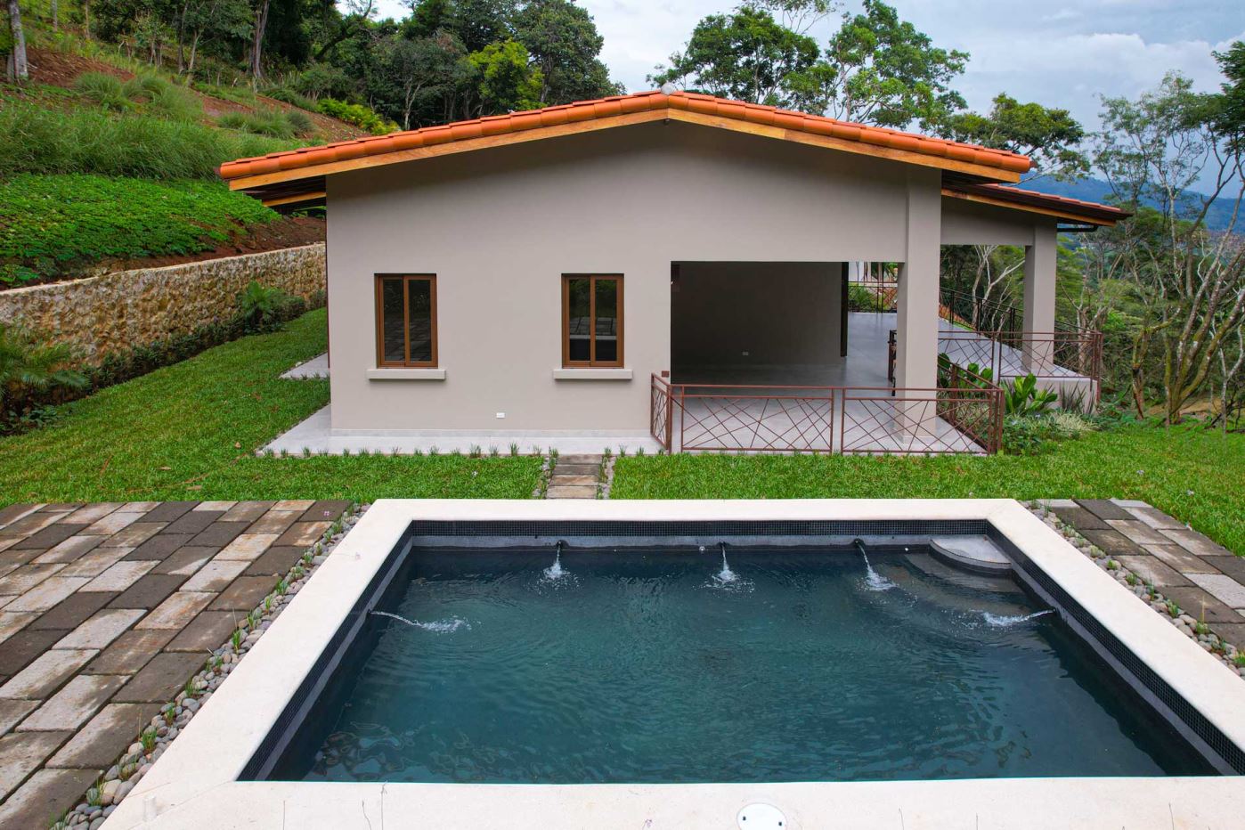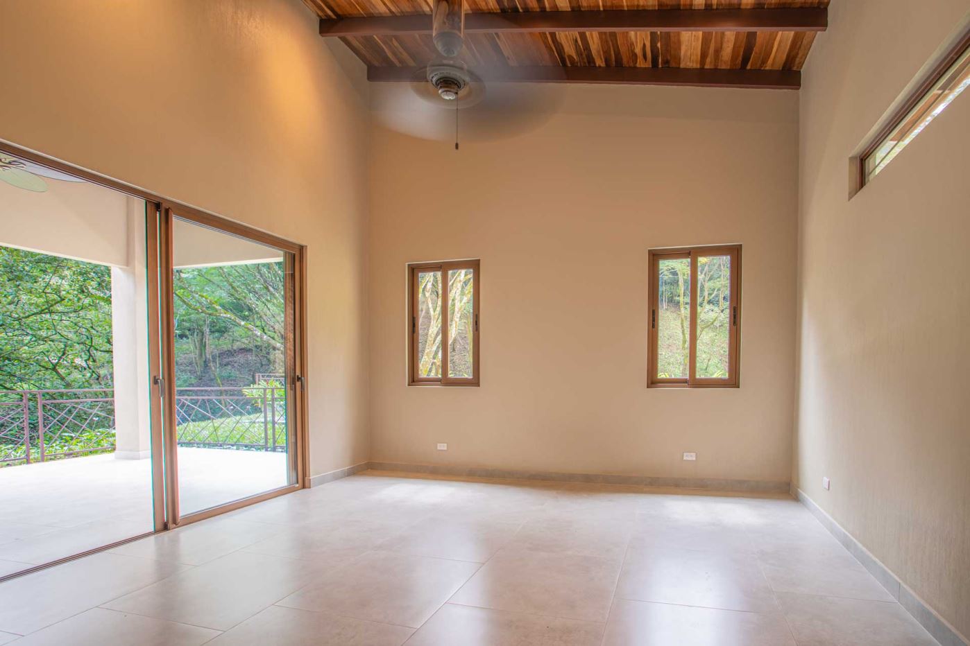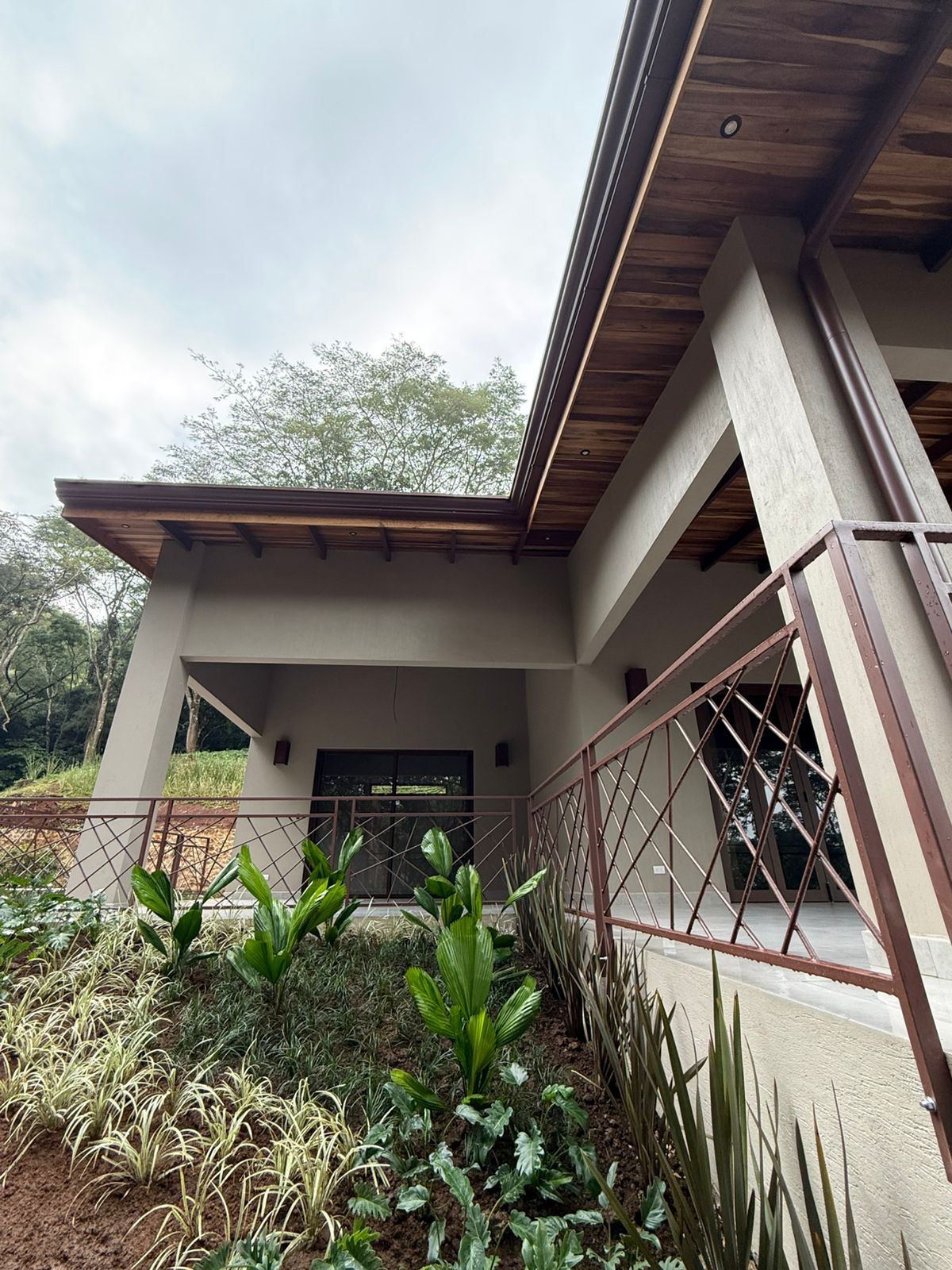 This developer has developed very high end and finely finished homes and will be finishing this 3 bedroom and 2.5 baths with a great inside-outside feel with tall artesenal wooden ceilings throughout with an extra ample living room, modern-style kitchen, plenty of covered terraces, office that sits on the last and more private low at the top of the new gated community. There are huge matures trees that added to natural wooded setting. All this just 7 minutes from Atenas Center.