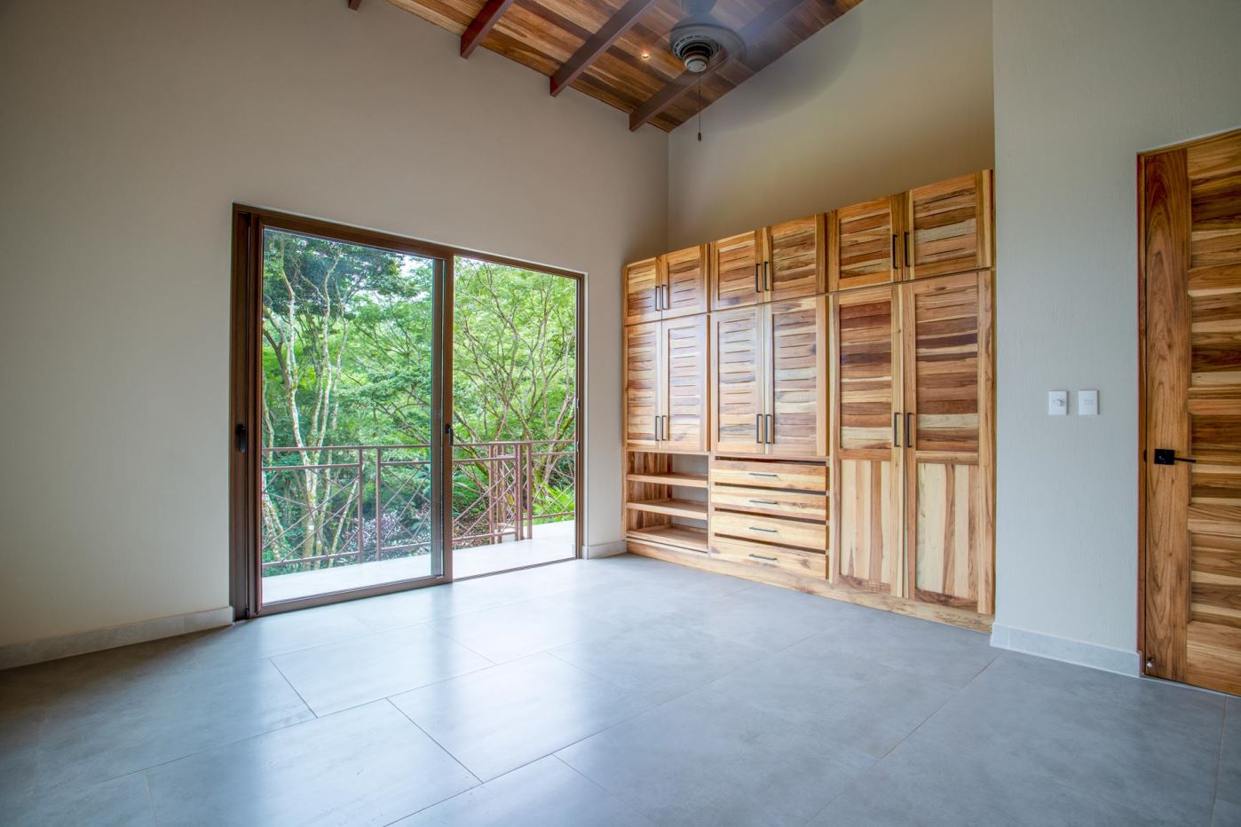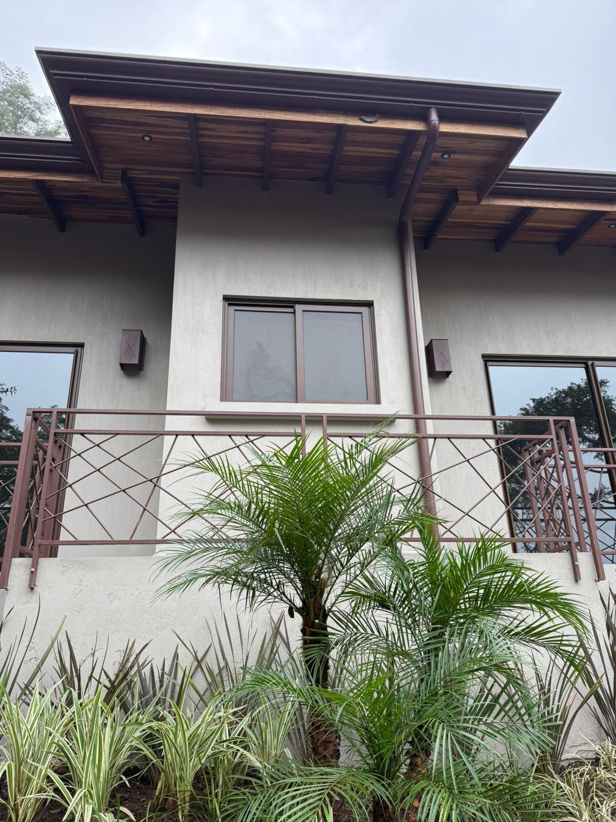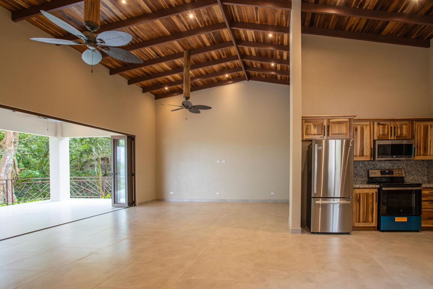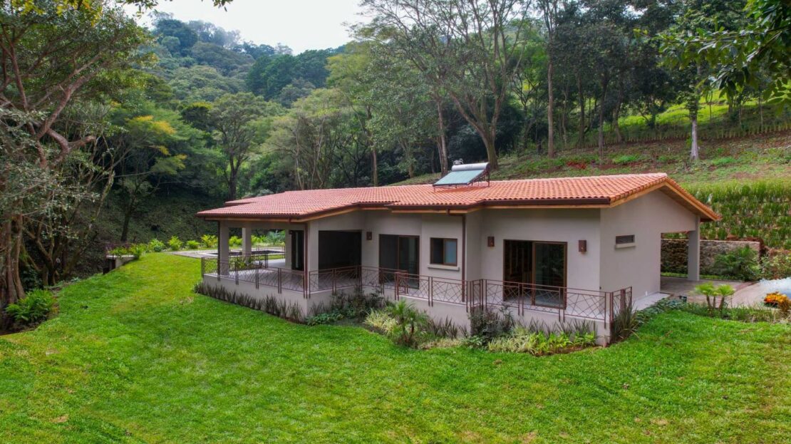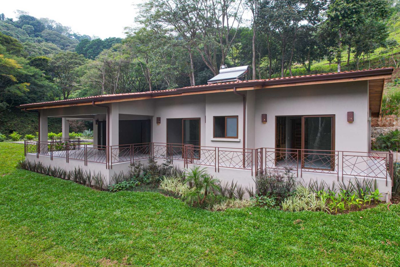 This developer has developed very high end and finely finished homes and will be finishing this 3 bedroom and 2.5 baths with a great inside-outside feel with tall artesenal wooden ceilings throughout with an extra ample living room, modern-style kitchen, plenty of covered terraces, office that sits on the last and more private low at the top of the new gated community. There are huge matures trees that added to natural wooded setting. All this just 7 minutes from Atenas Center.
