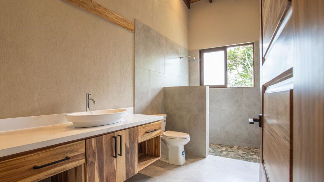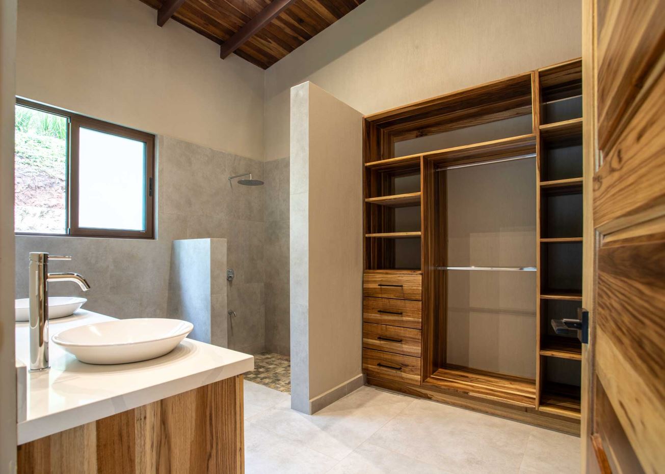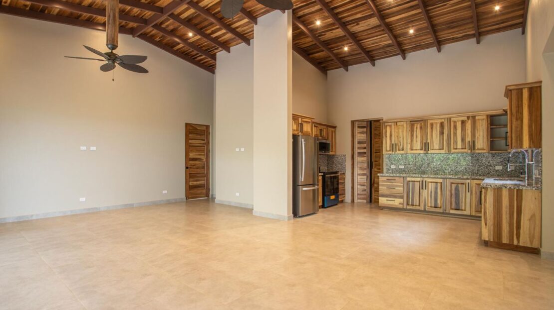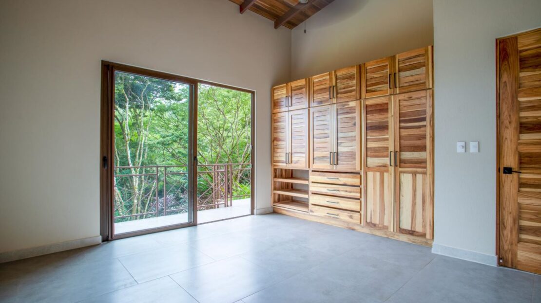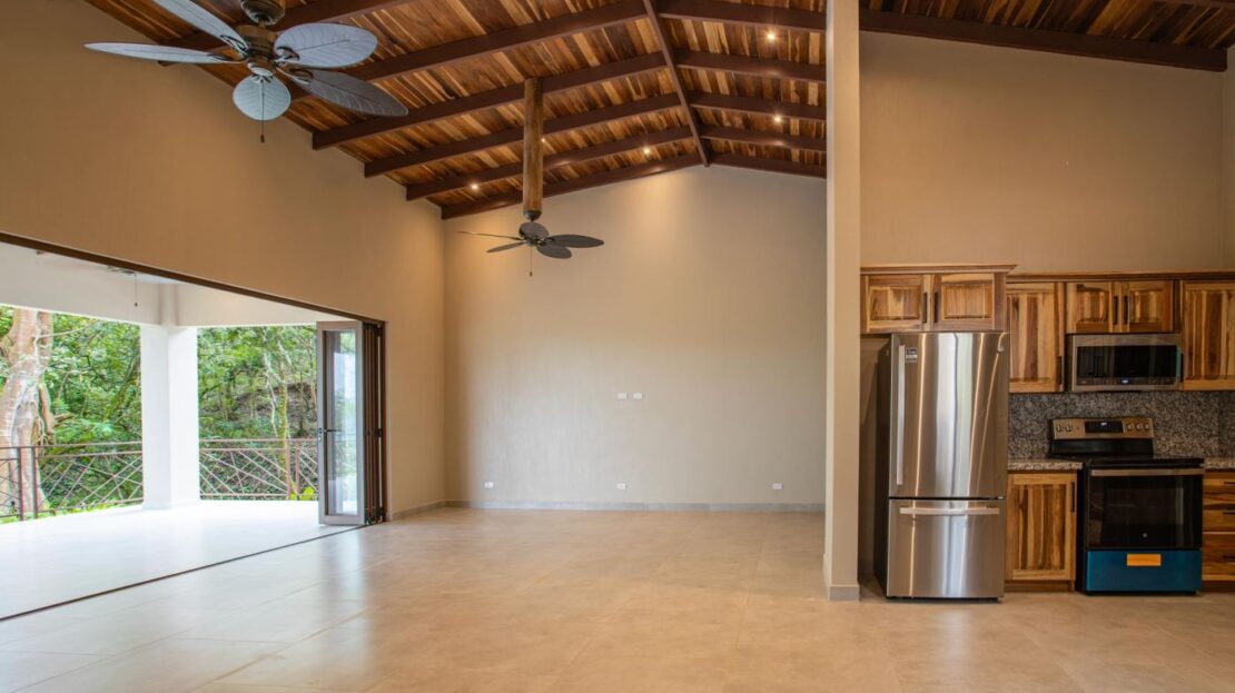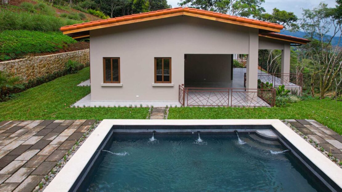 This developer has developed very high end and finely finished homes and will be finishing this 3 bedroom and 2.5 baths with a great inside-outside feel with tall artesenal wooden ceilings throughout with an extra ample living room, modern-style kitchen, plenty of covered terraces, office that sits on the last and more private low at the top of the new gated community. There are huge matures trees that added to natural wooded setting. All this just 7 minutes from Atenas Center.