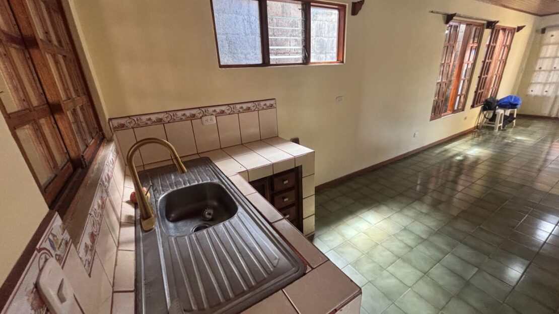 This house in downtown Atenas, very close to everything, has 4 bedrooms, 2 bathrooms, a large garage, a living room, a dining room, a kitchen, a laundry room, and a ranch. There’s an additional apartment-style bedroom with a bathroom. There’s also a green area behind the house.