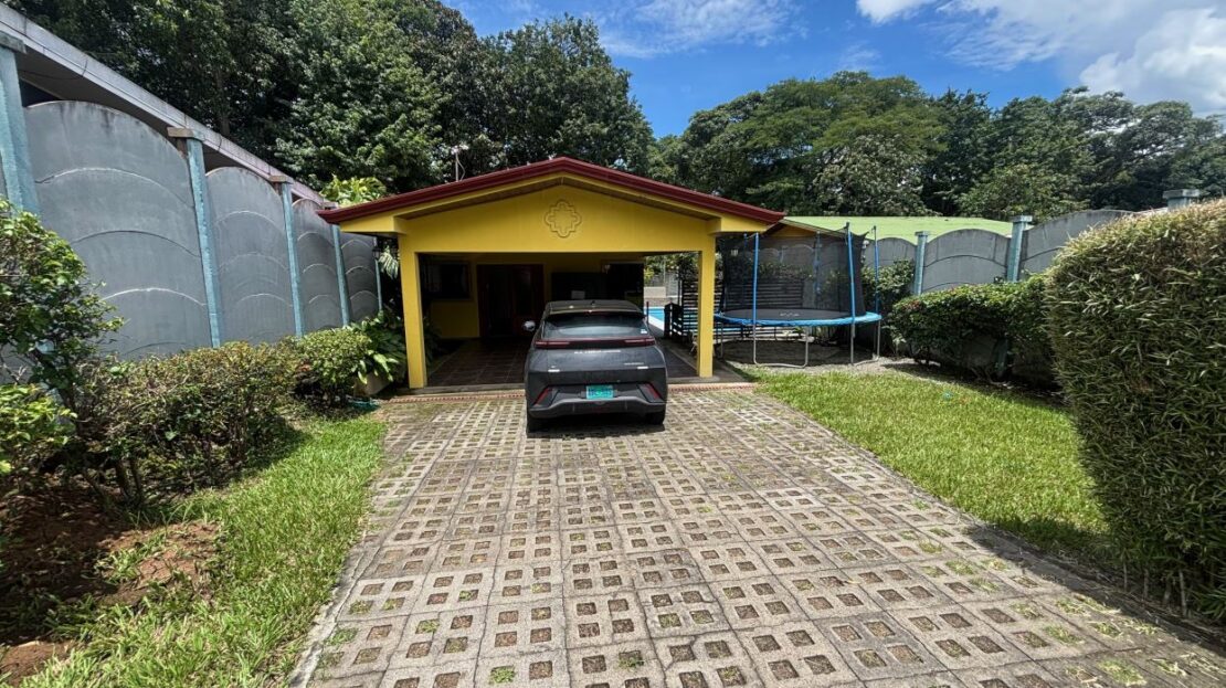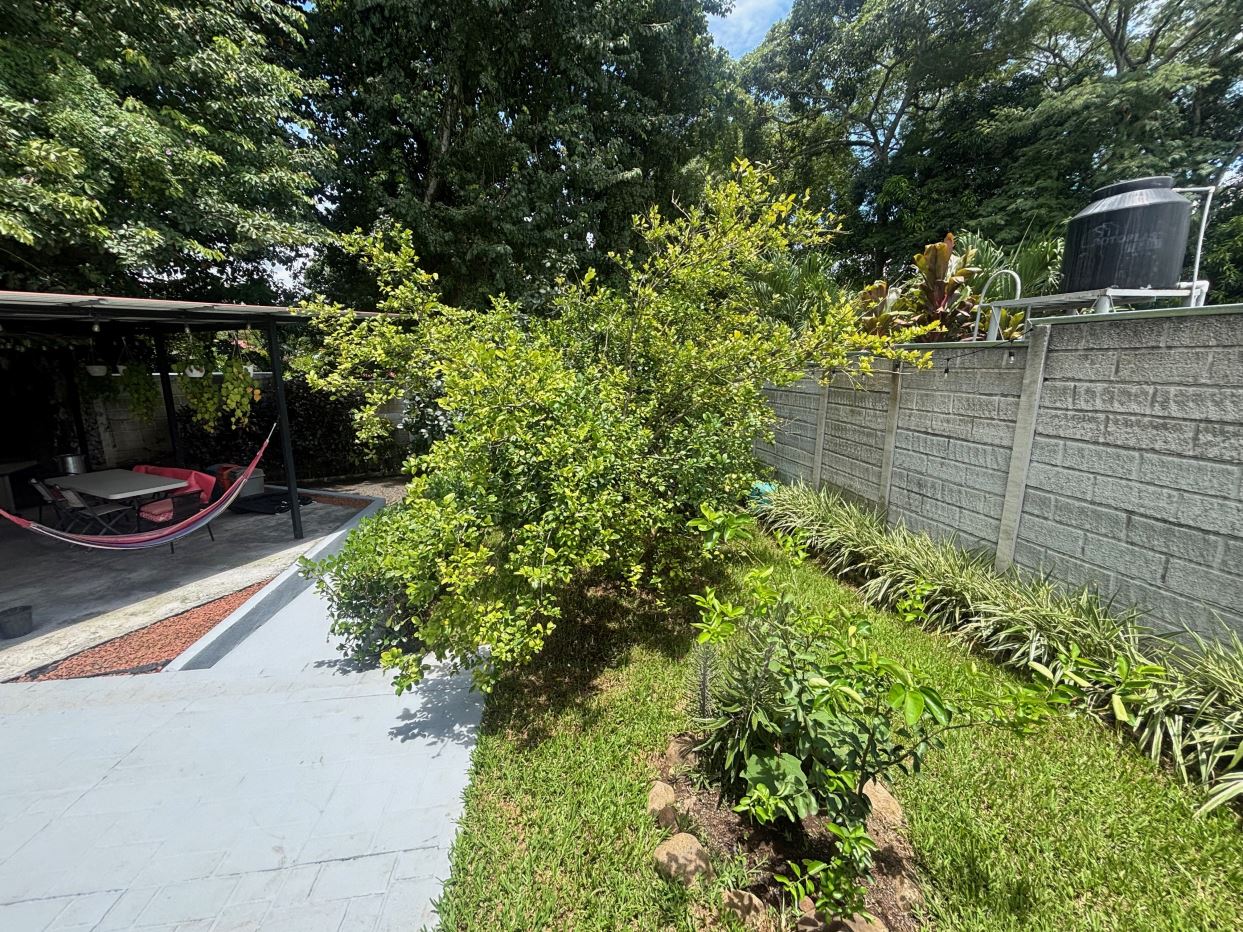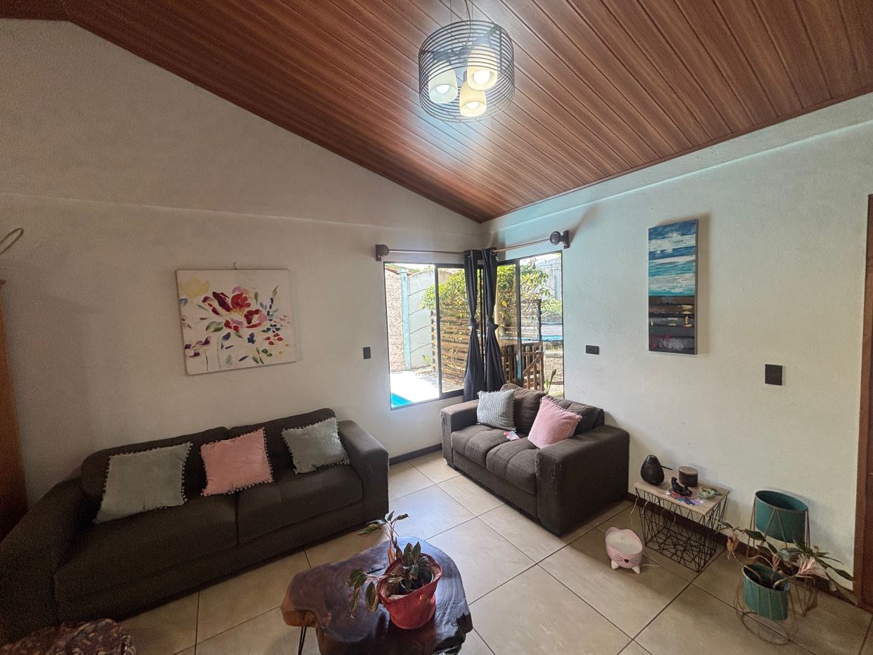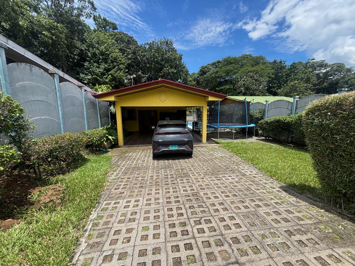 A cozy Atenas home with pool and rancho conveniently located close to everything.  This nicely designed and finished ranch style home is located just 1 minute from the east-west 27 highway and 3 minutes from Atenas Center but lies on a quiet residencial street within a short walk of supermarkets and restaurants.  The front of the home is entered by an automatic gate with a private and secure perimeter throughout.  The long private entrance leads to a carport and formal entry into the common area living room, kitchen and to the three bedrooms and one bath.  The kitchen leads way to a beautiful artesenal covered porch area adjacent to the long inviting pool and deck area.  The nicely landscaped backyard has a nice size orchard with plenty of citrus plants and other fruit trees.  There is an added annex room ideal for a separate apartment with bathroom or home office.  Farther in the back of the home is a covered bbq location.  There is an added storage area.