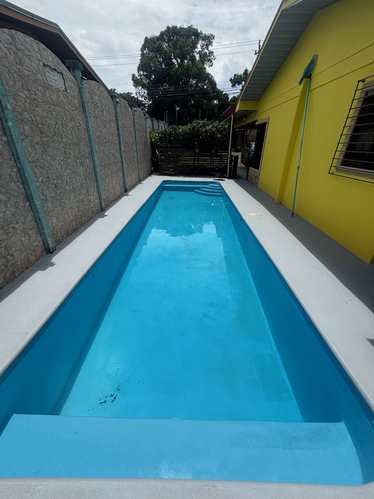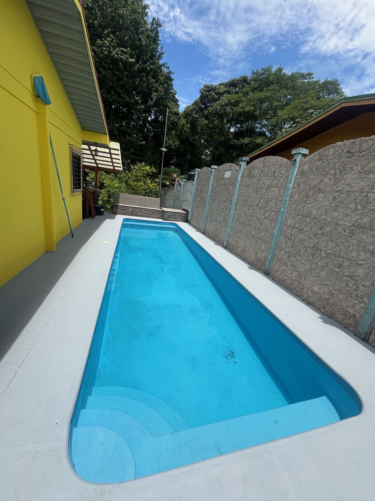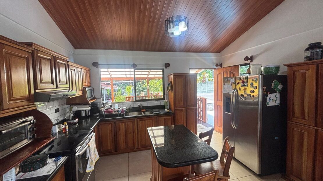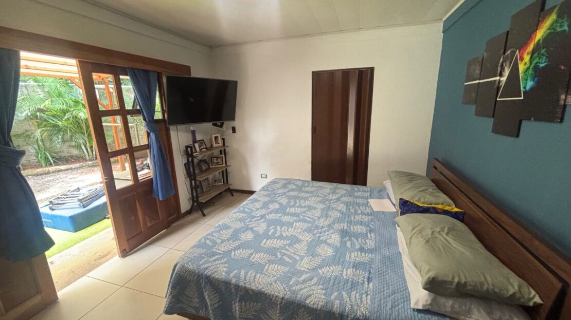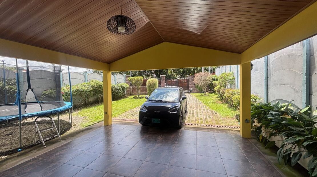 A cozy Atenas home with pool and rancho conveniently located close to everything.  This nicely designed and finished ranch style home is located just 1 minute from the east-west 27 highway and 3 minutes from Atenas Center but lies on a quiet residencial street within a short walk of supermarkets and restaurants.  The front of the home is entered by an automatic gate with a private and secure perimeter throughout.  The long private entrance leads to a carport and formal entry into the common area living room, kitchen and to the three bedrooms and one bath.  The kitchen leads way to a beautiful artesenal covered porch area adjacent to the long inviting pool and deck area.  The nicely landscaped backyard has a nice size orchard with plenty of citrus plants and other fruit trees.  There is an added annex room ideal for a separate apartment with bathroom or home office.  Farther in the back of the home is a covered bbq location.  There is an added storage area.