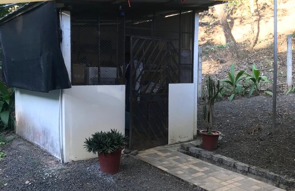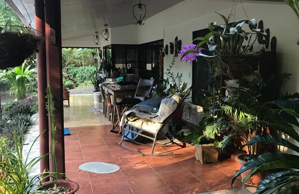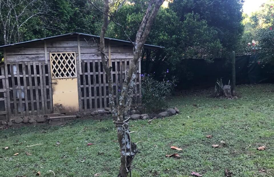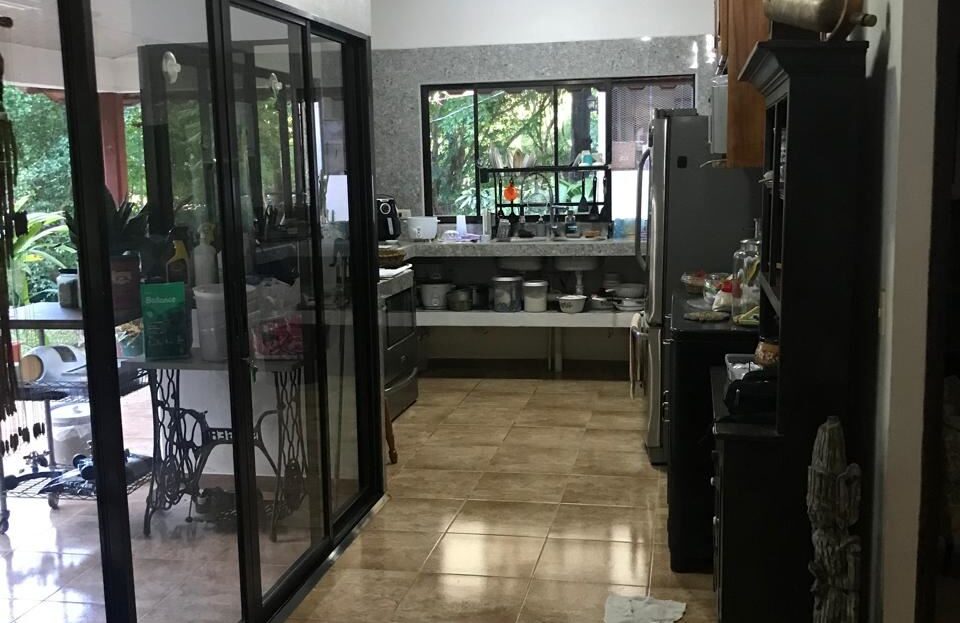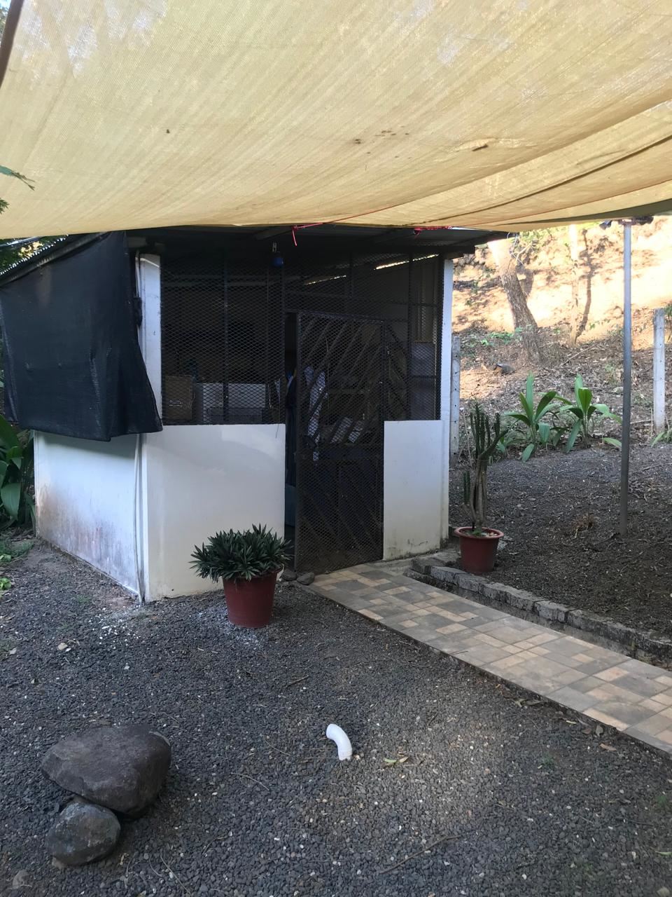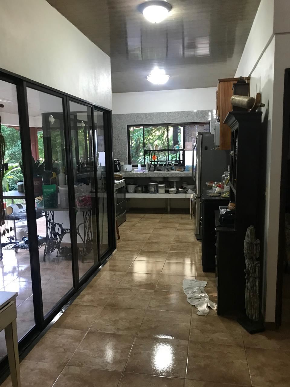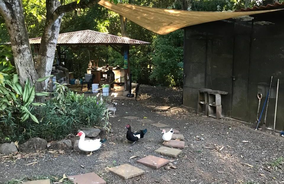 Countryside home in a farm setting next to primary forest with stream composed of 2 parcels, 3037 square meters, includes a house with 2 bedrooms, living room, kitchen, 2 full bathrooms, large hallway, laundry room, storage areas, garages for 6 cars, rancho bbq, pond, chicken coops, cages, green area, gardens, fruit and ornamental trees. There is a perimeter fence, security cameras.