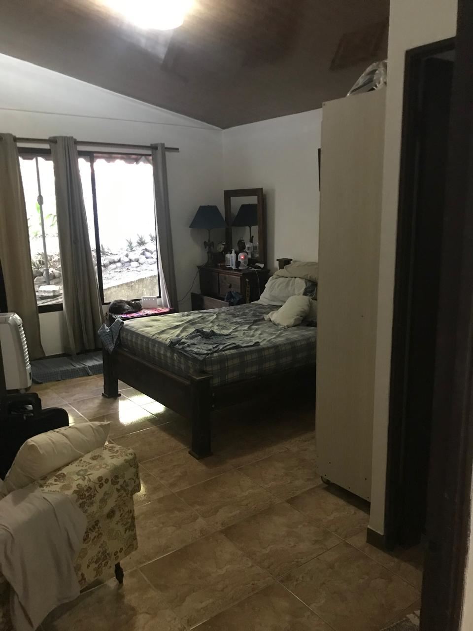 Casa de campo en una finca junto a un bosque primario con arroyo, compuesta por dos parcelas de 3037 metros cuadrados. Incluye una casa con dos recámaras, sala, cocina, dos baños completos, amplio pasillo, lavandería, bodegas, cochera para seis autos, área de asador, estanque, gallineros, jaulas, área verde, huertos, árboles frutales y ornamentales. Cuenta con cerca perimetral y cámaras de seguridad.
