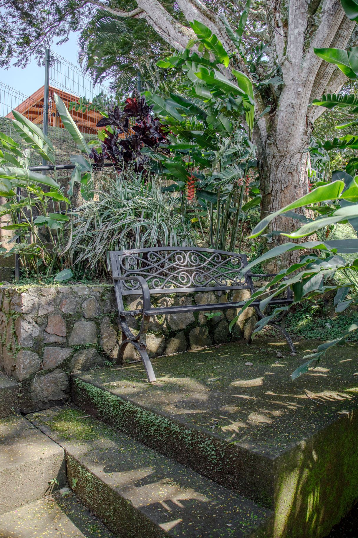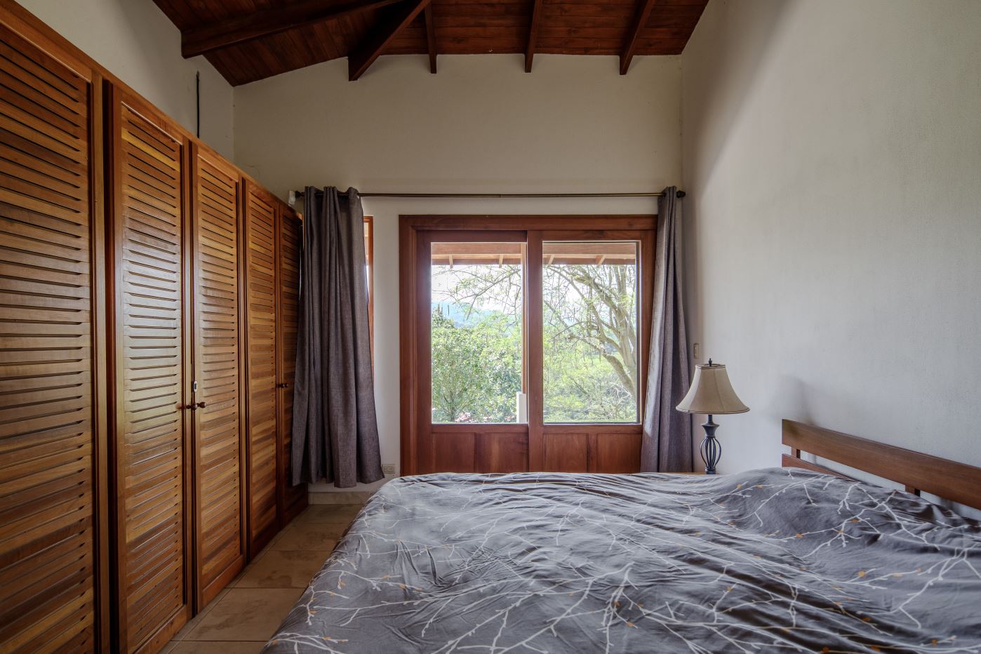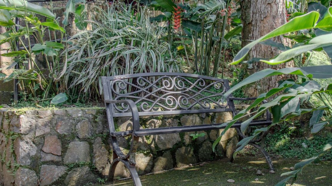 En el extremo opuesto de la propiedad se encuentra la casa de invitados más pequeña, de 170 m², con entrada independiente. Esta casa de dos dormitorios y dos baños, con una distribución agradable, presenta carpintería artesanal y un pequeño porche con amplio espacio para sentarse bajo techo. Dispone de un porche lateral de buen tamaño y un jardín bien cuidado. Se vende completamente amueblada e incluye electrodomésticos.