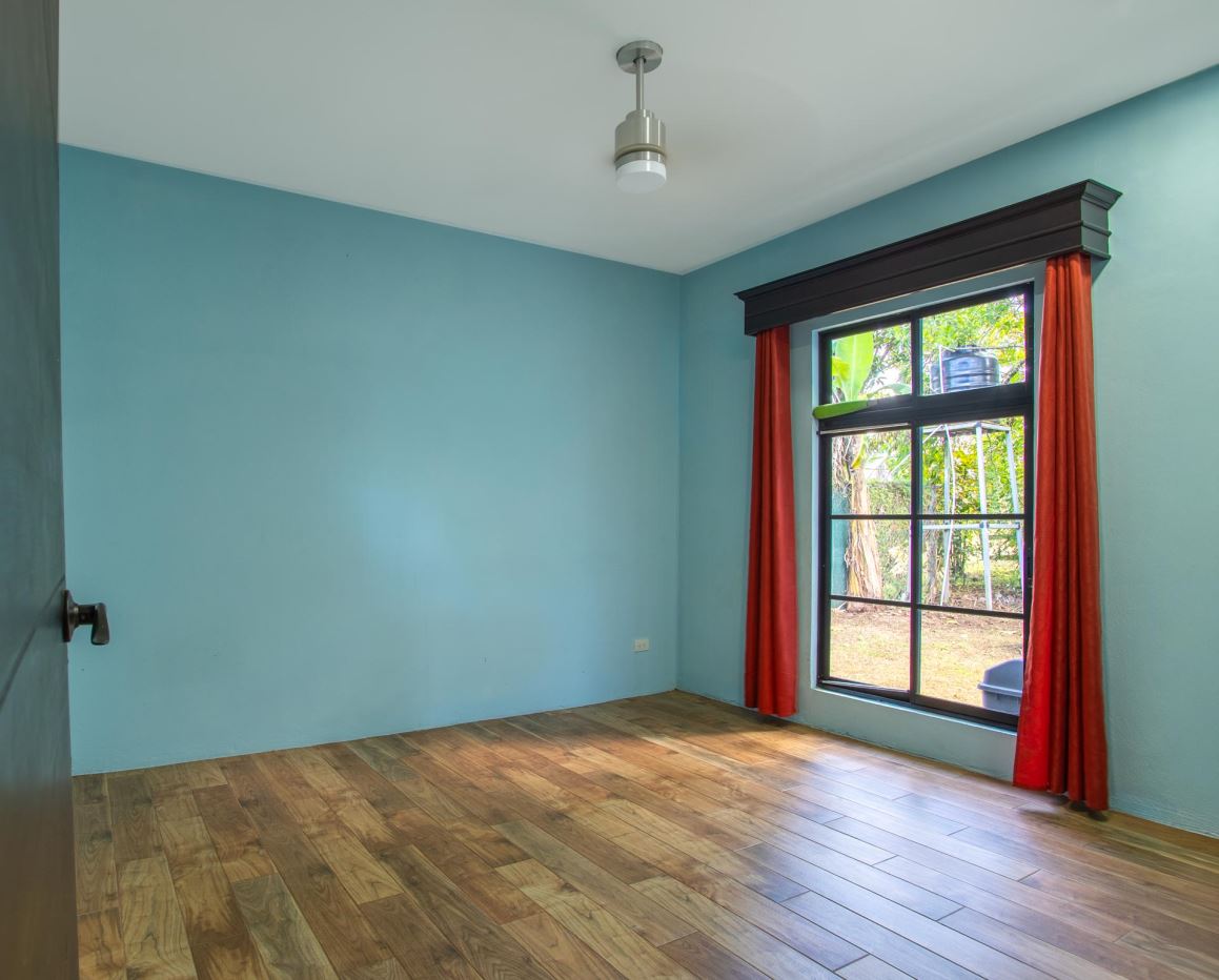 This is a very nicely designed home with lots of great finishes throughout.  It is located only 7 minutes from Atenas Center and found on a quiet side street with a couple of other neighbors in a country setting with nice views of the area mountains.  It has a front and back yard with plenty of space for landscaping or other projects.  The home features tall ceilings with moderns designs throughout the living and dining room with the modern kitchen at the end of the open floor plan.  This area leads way to a laundry area and to access to the attic.  To the other end of the home are two bedrooms with a guest bathroom and master bedrooms/bathroom.  There is an independent room ideal for an office or studio.   Come see your new home in Atenas!