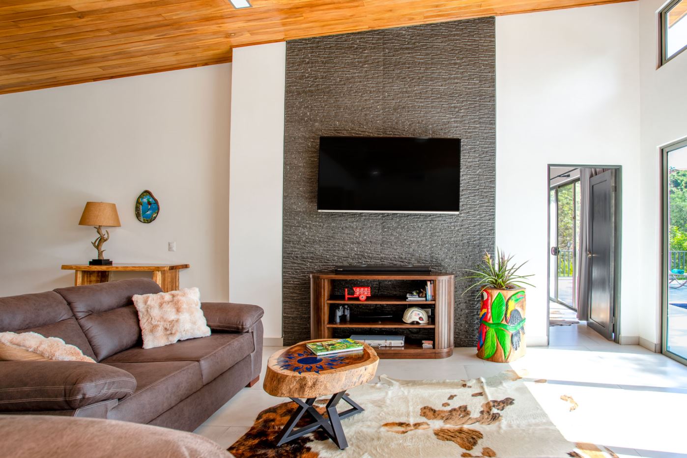 This modern furnished gem that features the latest in modern amenities and finishes can be found in the natural primary forest setting of Hacienda Atenas, on of the most premier communities in town. Located just 9 minutes from town center this home is tucked in a private enclave with plenty space in between the neighbors on a 1.75 acre lot. The long private driveway leads to the 2 car carport and the the formal entry.