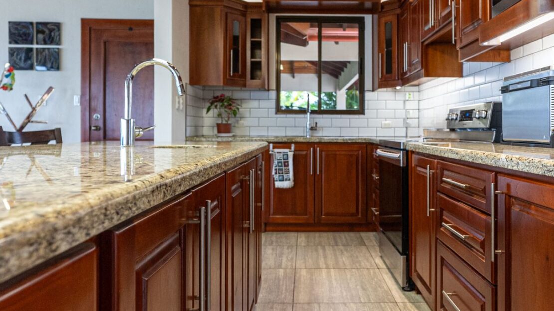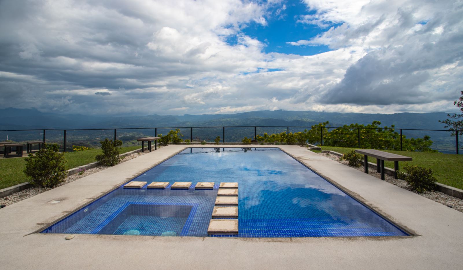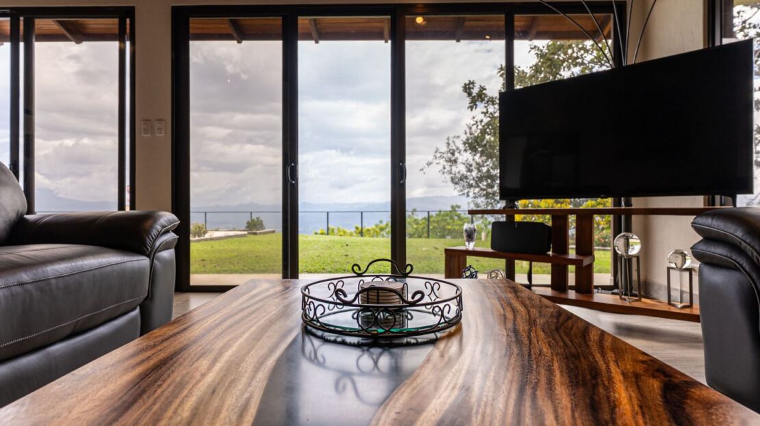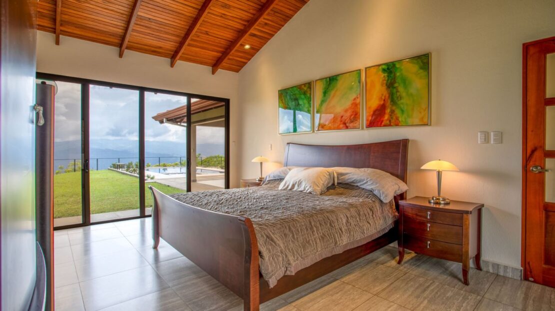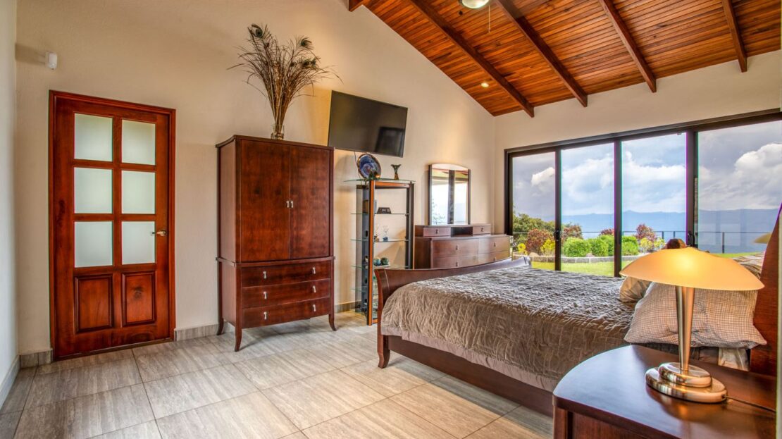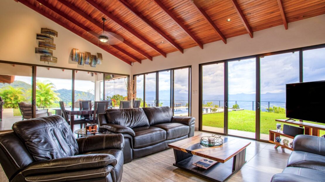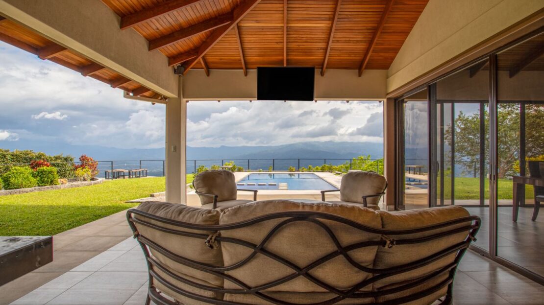 Mediterranean-style home with eclectic modern finishes in Hacienda Atenas with one of the best views on this side of town. This very well kept home sits just 8 minutes from town center and features amazing views of the Atenas countryside with the home facing south towards Puriscal and has almost a 300 degree view that includes some views of the Pacific Ocean and a good portion of the capital San Jose. The long private driveway leads two a 2-car carport with plenty of storage and electrical infrastructure for a home workshop. The formal entry leads to a large living-dining room area that nicely displays the woodwork to be found throughout the home including the inside and outside wood slatted ceiling, the woodwork thoughout the ample kitchen and bathrooms and the bedroom furniture. The kitchen has great lighting throughout ideal for a chef with an ultramodern centerpiece over the large kitchen island.