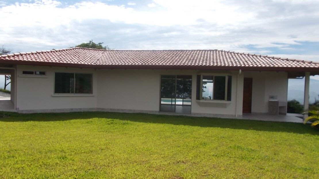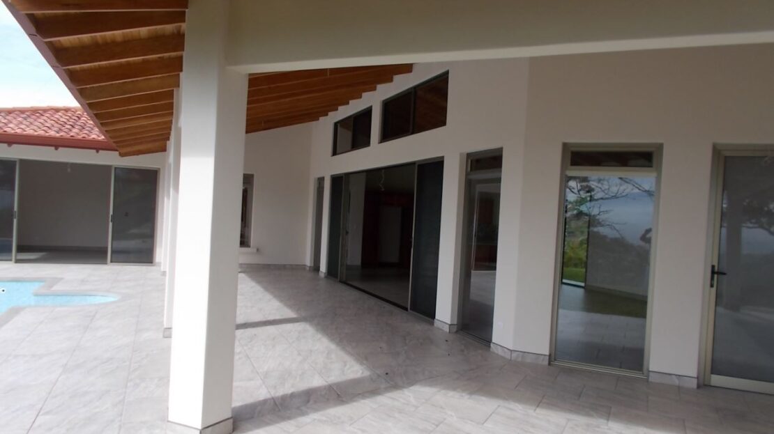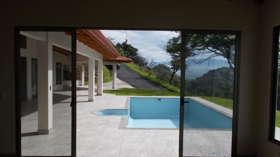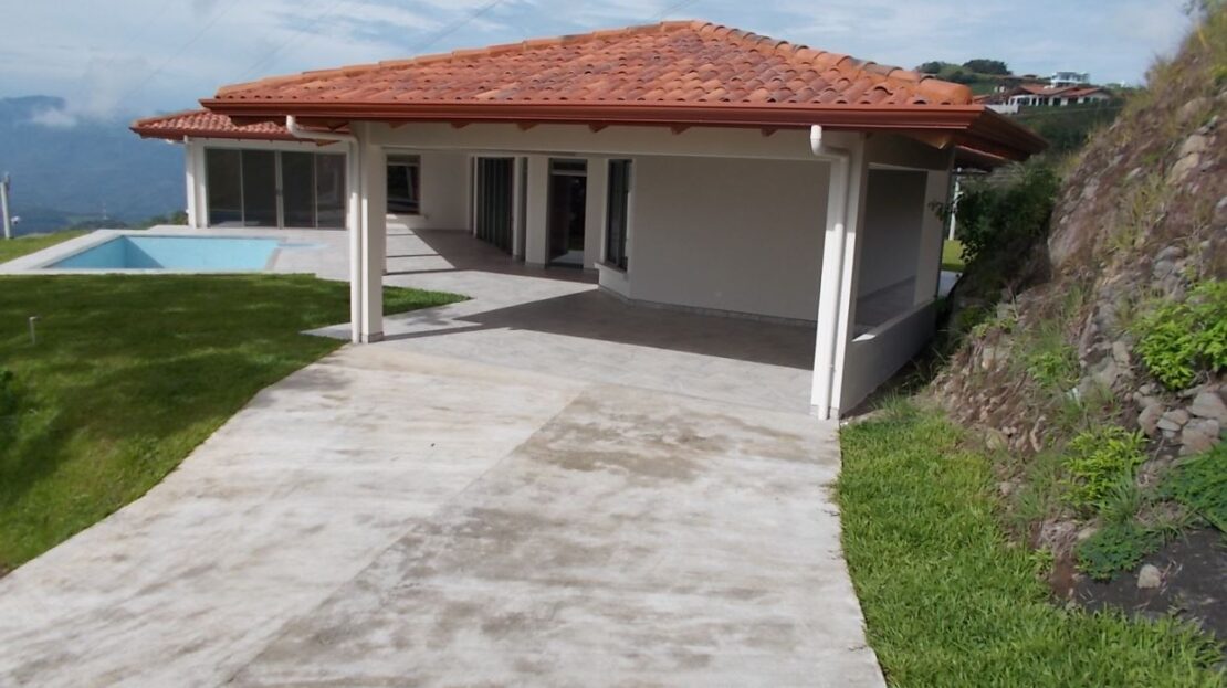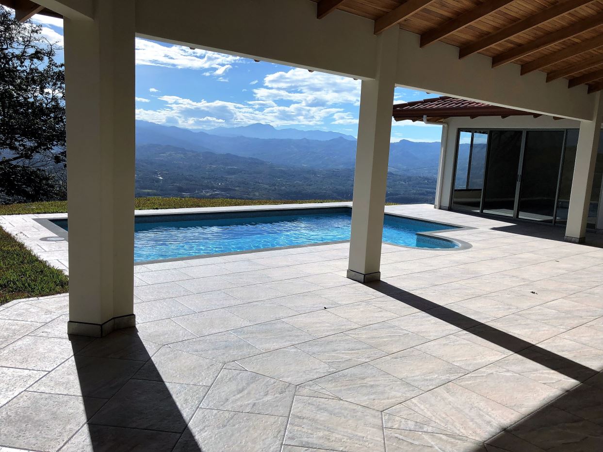 This modern meets traditional finishes Roca Verde home is located in Atenas’ premier community Roca Verde. Very close to Atenas center and the pass that leads to the east west highway. This home features huge panoramic 180 degree homes of the capital San Jose and the area mountains. The 2 car carport leads to the front nicely decorated yard and inviting pool and deck area. The formal entry to the home features tall artesenal wooden slatted ceilings with plenty of light to showcase the homes wonderful woodwork and modern sleek finishes throughout. There is an ample kitchen with granite countertops and nicely finished wooded cabinetry. There are three bedrooms including the master bedroom, master bathroom bathroom on suite and walk in closet and a guest bath plus half bath. There’s a nice size back yard and the property features a lower level lot ideal for added construction, added parking or orchard and garden area.