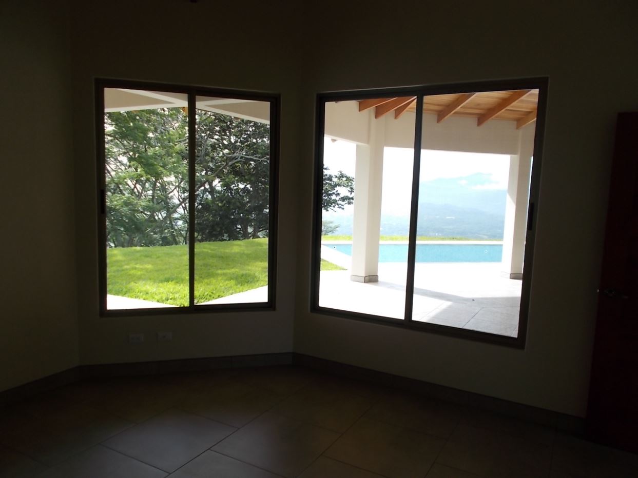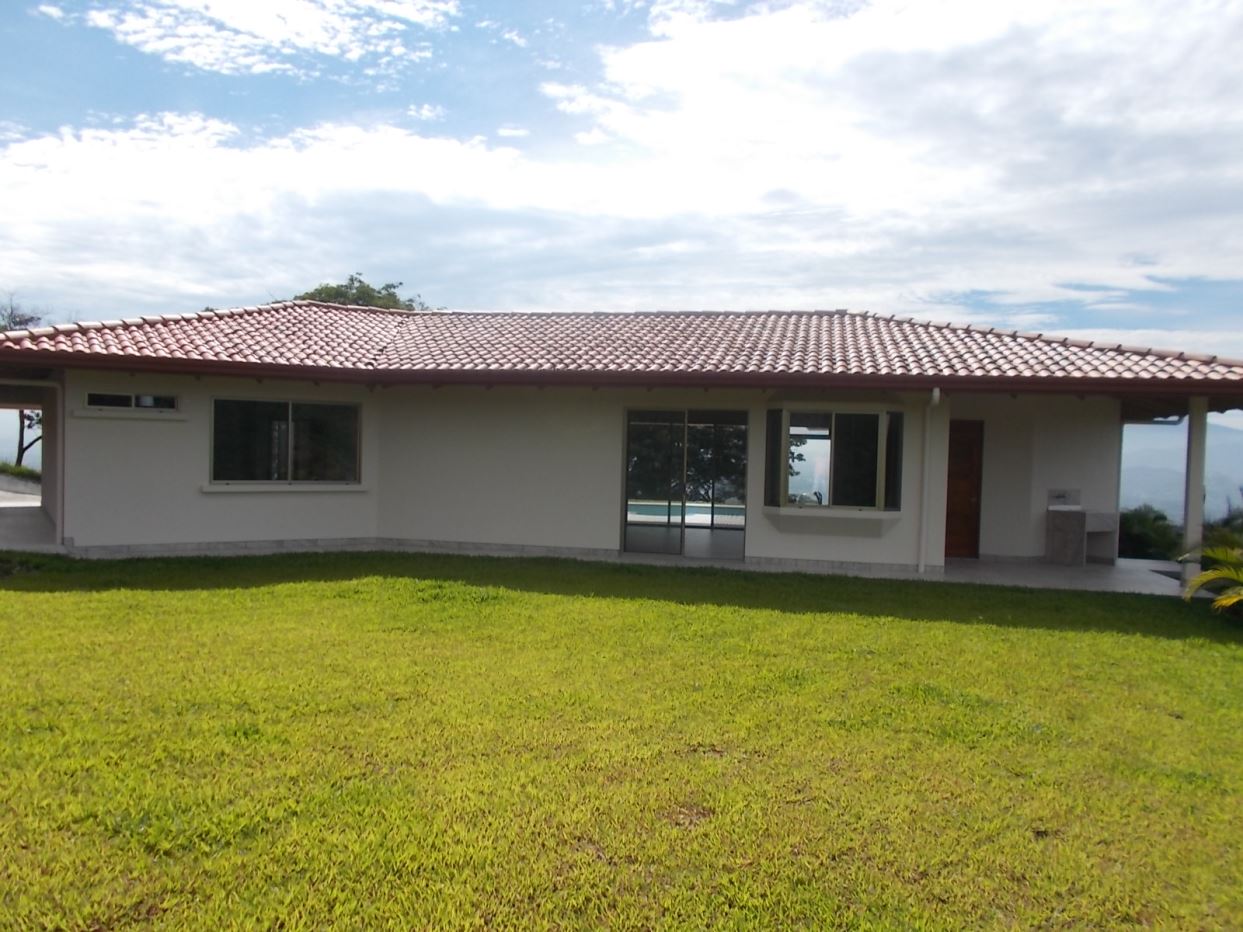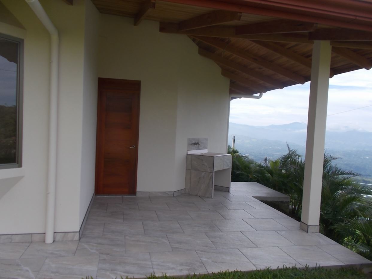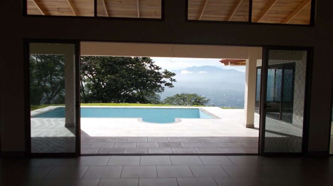 This modern meets traditional finishes Roca Verde home is located in Atenas’ premier community Roca Verde. Very close to Atenas center and the pass that leads to the east west highway. This home features huge panoramic 180 degree homes of the capital San Jose and the area mountains. The 2 car carport leads to the front nicely decorated yard and inviting pool and deck area. The formal entry to the home features tall artesenal wooden slatted ceilings with plenty of light to showcase the homes wonderful woodwork and modern sleek finishes throughout. There is an ample kitchen with granite countertops and nicely finished wooded cabinetry. There are three bedrooms including the master bedroom, master bathroom bathroom on suite and walk in closet and a guest bath plus half bath. There’s a nice size back yard and the property features a lower level lot ideal for added construction, added parking or orchard and garden area.