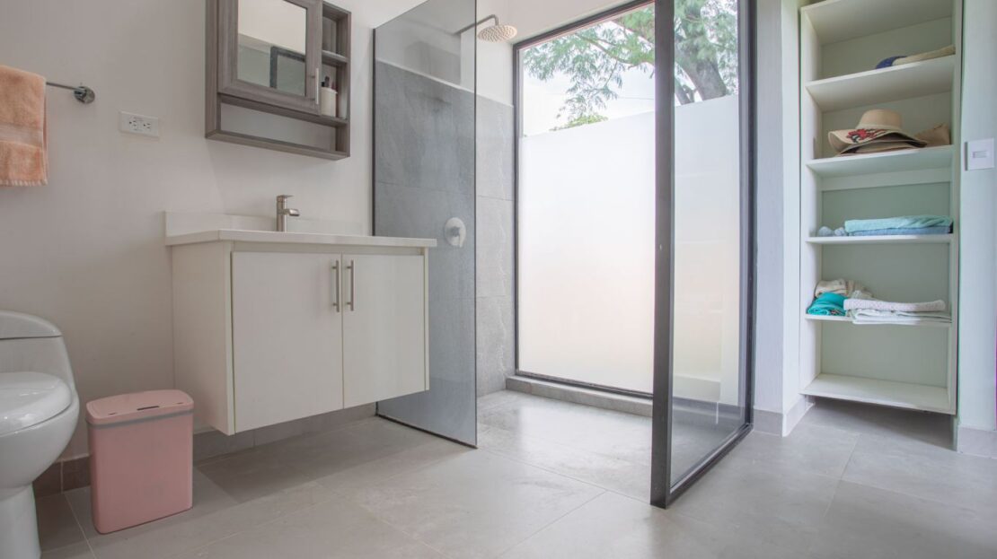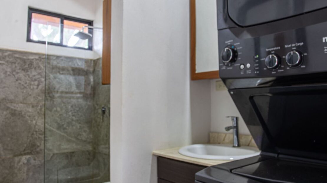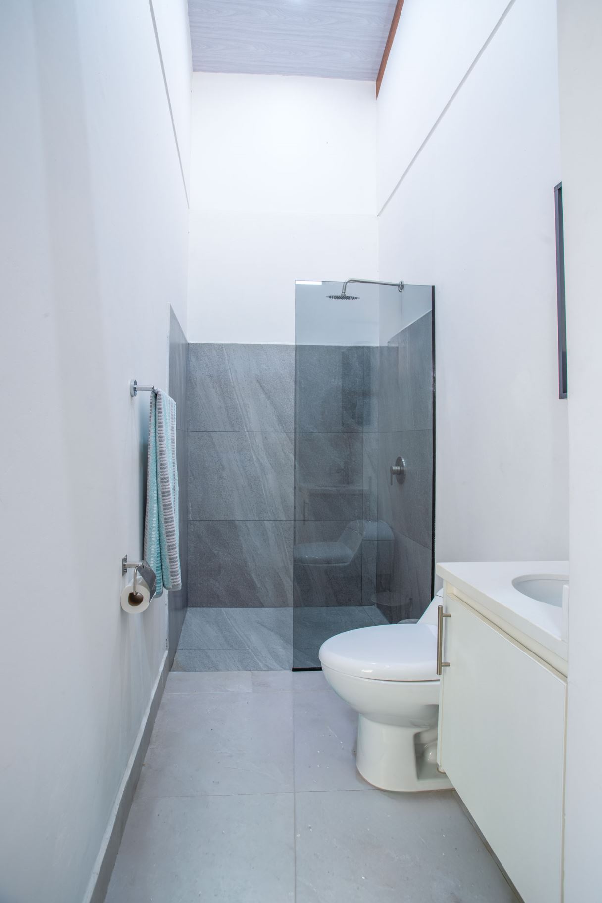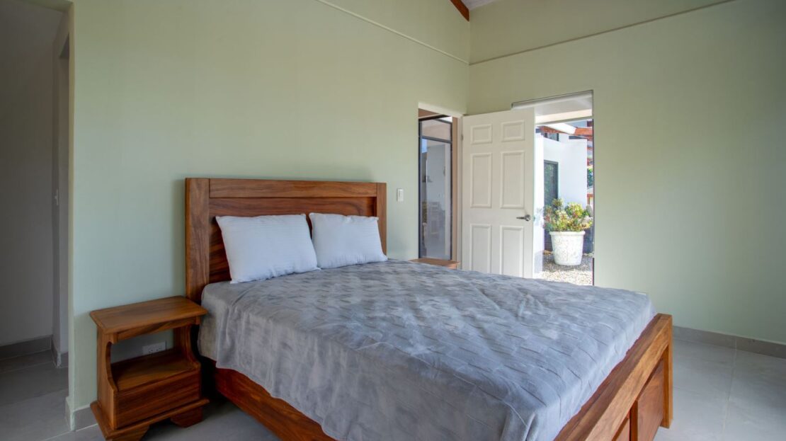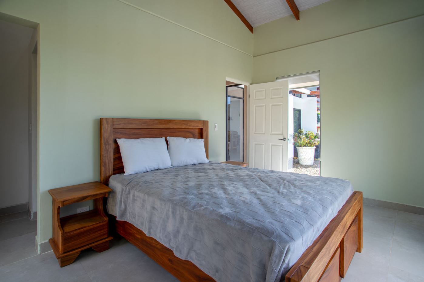 Modern designs can be found in this gated community in a natural setting in the Atenas countryside. This home is located in the private community of Cerro Luna in Barrio San Jose, about 12 minutes from town center. The property features 300 degree views towards the capital of San Jose, the area mountains and a good part of the small town of Atenas. The home’s layout features a common social open floor plan living and dinig room adjacent to a modern kitchen with artesenal woodwork throughout. This area leads to the inviting covered porch area and swimming pool. The master bedroom with ensuite bathroom can be found on one end of the home and two guest bedrooms on the opposite end with guest bathroom. The property is surrounded by nicely landscapped gardens and one also can find an independent guest studio on the opposite end of the lot with a kithen-dining area and full bathroom.