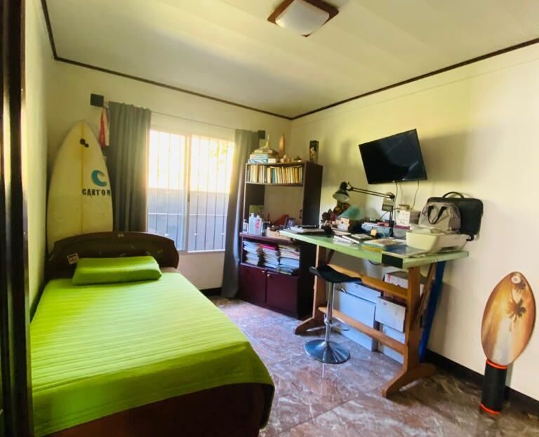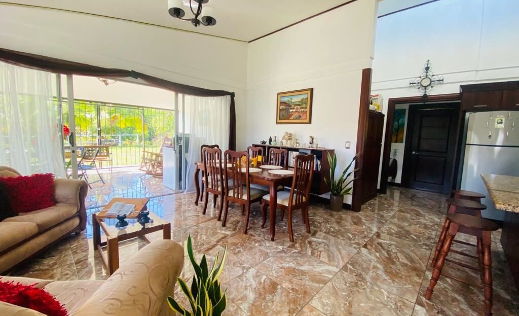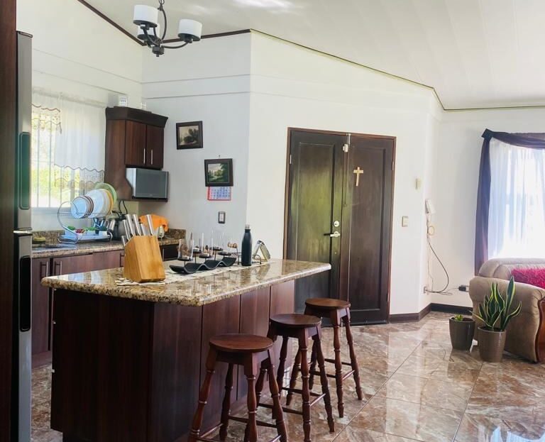 Home with large yard and orchard that touches a river located just 10 minutes from Atenas Center in the San Isidro countryside. The entrance leads past a nice front lawn to plenty of parking with an adjacent studio that can remodeled into many different types of uses. The formal entry of this modern-style home leads to nice size kitchen, living and dining areas. A back enclosed porch leads to an inviting back yard with an ideal spot of a swimming pool or added construction. The home has 3 bedrooms and 2 bath with a master bedroom with en suite bathroom with ample space throughout. The backyard leads to a path that meanders downhill to a lower level ideal as an added orchard and at the end touches a year-long river.