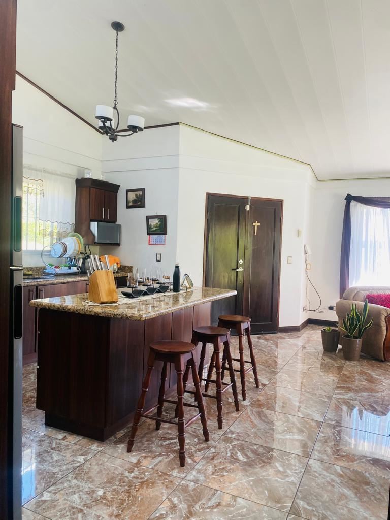 Casa con amplio patio y huerto que toca un río ubicada a solo 10 minutos del Centro de Atenas en el campo de San Isidro. La entrada pasa por un bonito césped delantero hasta un amplio estacionamiento con un estudio adyacente que se puede remodelar en muchos tipos diferentes de usos. La entrada formal de esta casa de estilo moderno conduce a una cocina de buen tamaño, sala de estar y comedor. Un porche trasero cerrado conduce a un acogedor patio trasero con un lugar ideal para una piscina o una construcción adicional. La casa tiene 3 dormitorios y 2 baños con un dormitorio principal con baño en suite con amplio espacio en todas partes. El patio trasero conduce a un camino que serpentea cuesta abajo hasta un nivel inferior ideal como un huerto adicional y al final toca un río de un año.
