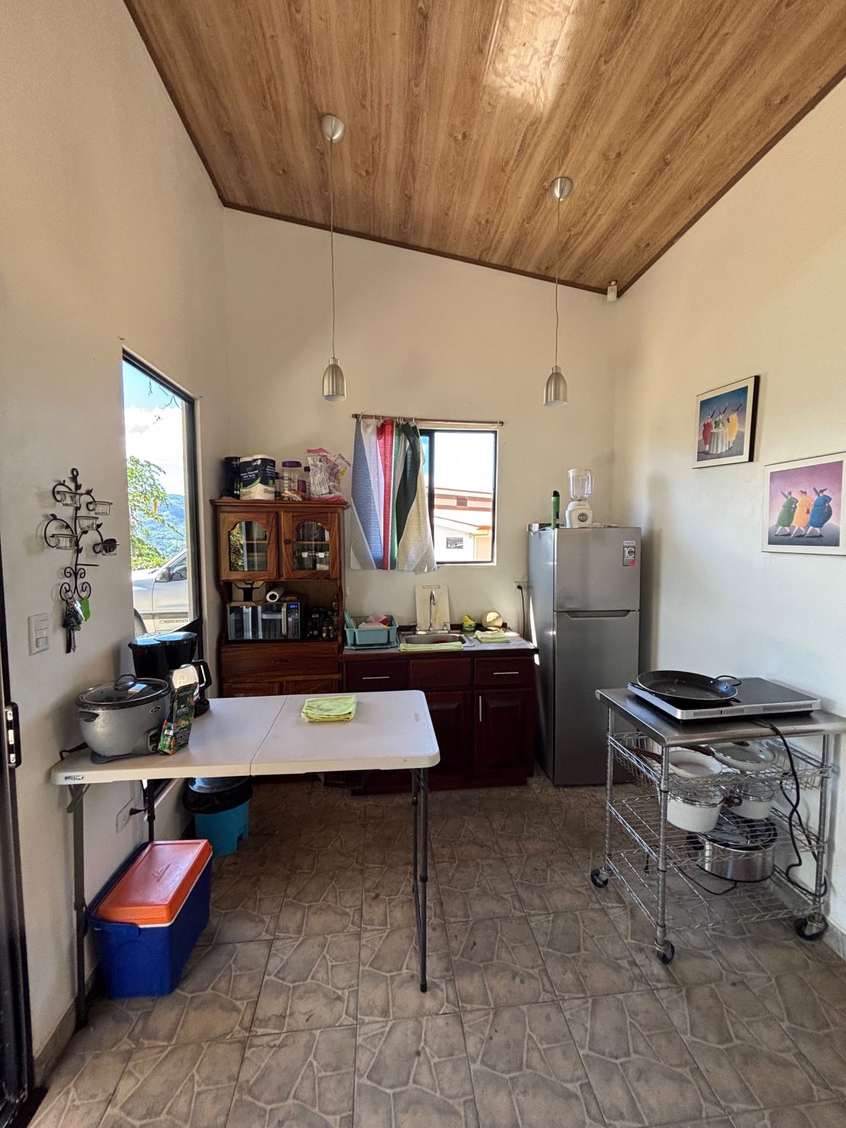 Casa de estilo único y casa de huéspedes con grandes vistas en la comunidad rural cerrada de Atenas se encuentra a menos de 15 minutos del Centro de Atenas en una comunidad que ofrece fibra óptica, una gran fuente de agua, entrada de control cerrada y camino de adoquines hasta la propiedad. Las increíbles vistas desde esta propiedad se extienden de este a oeste, por lo que es posible ver los amaneceres y los atardeceres, desde la ciudad hasta el Océano Pacífico con grandes vistas al sur de la naturaleza. La larga entrada privada a la propiedad conduce a una gran área de almacenamiento de 50m2 y a la casa principal que se compone de 2 dormitorios principales en suite con baño y una casa de huéspedes de 1 dormitorio. La casa principal tiene un porche extra grande que se extiende de un extremo de la casa al otro, ideal para vivir al aire libre. La gran cocina abierta, el comedor y la sala de estar ofrecen acceso directo a los dos dormitorios. Las puertas corredizas de vidrio en la sala de estar conducen al atractivo porche cubierto, la piscina de agua salada y el área de terraza. Adyacentes hay varios árboles de mango junto con un huerto compuesto de magos, naranjas, limas, cocos, plátanos, plátanos, manzanas de agua, papayas, guayabas, aguacates, otros tipos de cítricos y pitahaya. Hay flora y fauna de todo tipo en el área, incluidos todo tipo de aves, incluidos tucanes y halcones, así como monos. Además, la casa principal cuenta con un área de lavandería y medio baño separados, así como una gran área de almacenamiento con horno de leña adjunto.