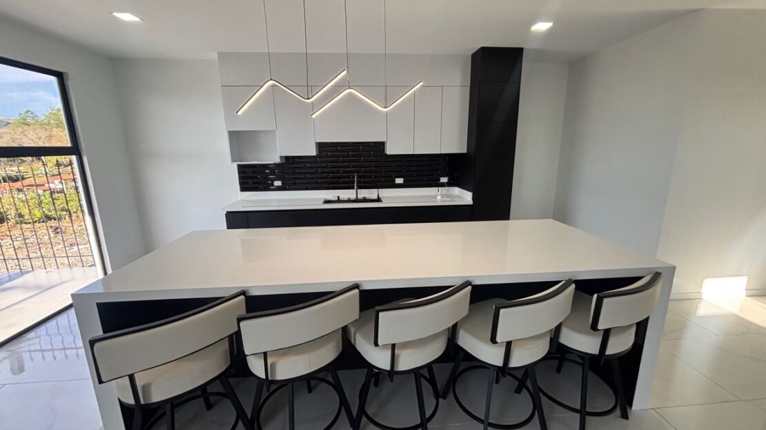 Casa ultramoderna con grandes vistas al Valle Central se encuentra a solo 10 minutos del centro de la ciudad en el tranquilo campo entre Morazán y San Isidro. Las temperaturas más frescas y las vistas panorámicas siempre cambiantes son la ubicación perfecta para experimentar los climas más fríos de Atenas. La casa tiene un perímetro con una entrada larga para varios autos y la entrada formal a una sala de concepto abierto con un dormitorio de invitados y baño separado debajo y un dormitorio grande con baño en suite. Hay acabados y accesorios de primera calidad en toda la casa. La cocina de estilo moderno tiene una gran isla central ideal para el entretenimiento, lo que hace que la cocina sea el centro de la casa. Una escalera conduce a un dormitorio principal extra grande y un área de baño en suite con una sala de estar y un balcón con vistas cada vez más grandes. La casa se vende semiamueblada con muebles de diseño y electrodomésticos de última generación.