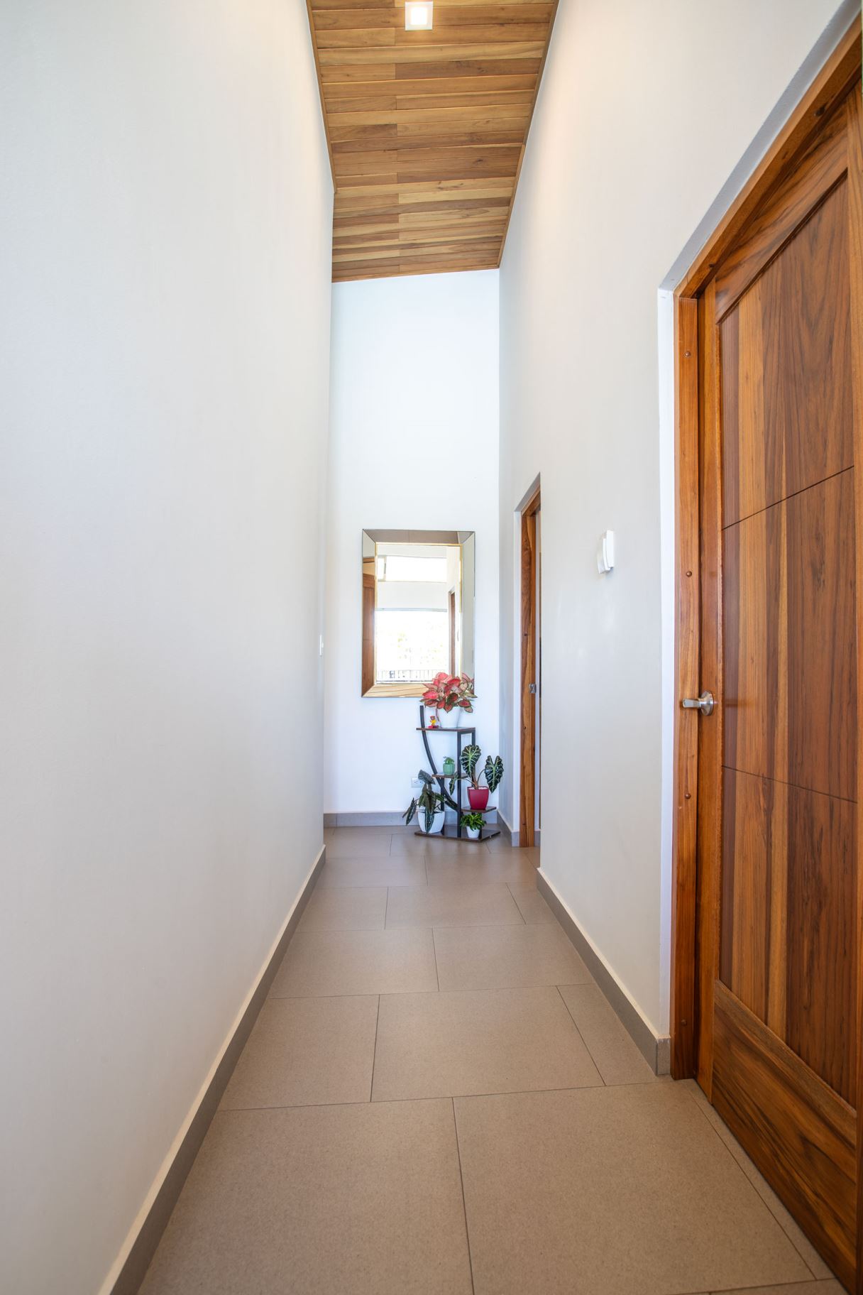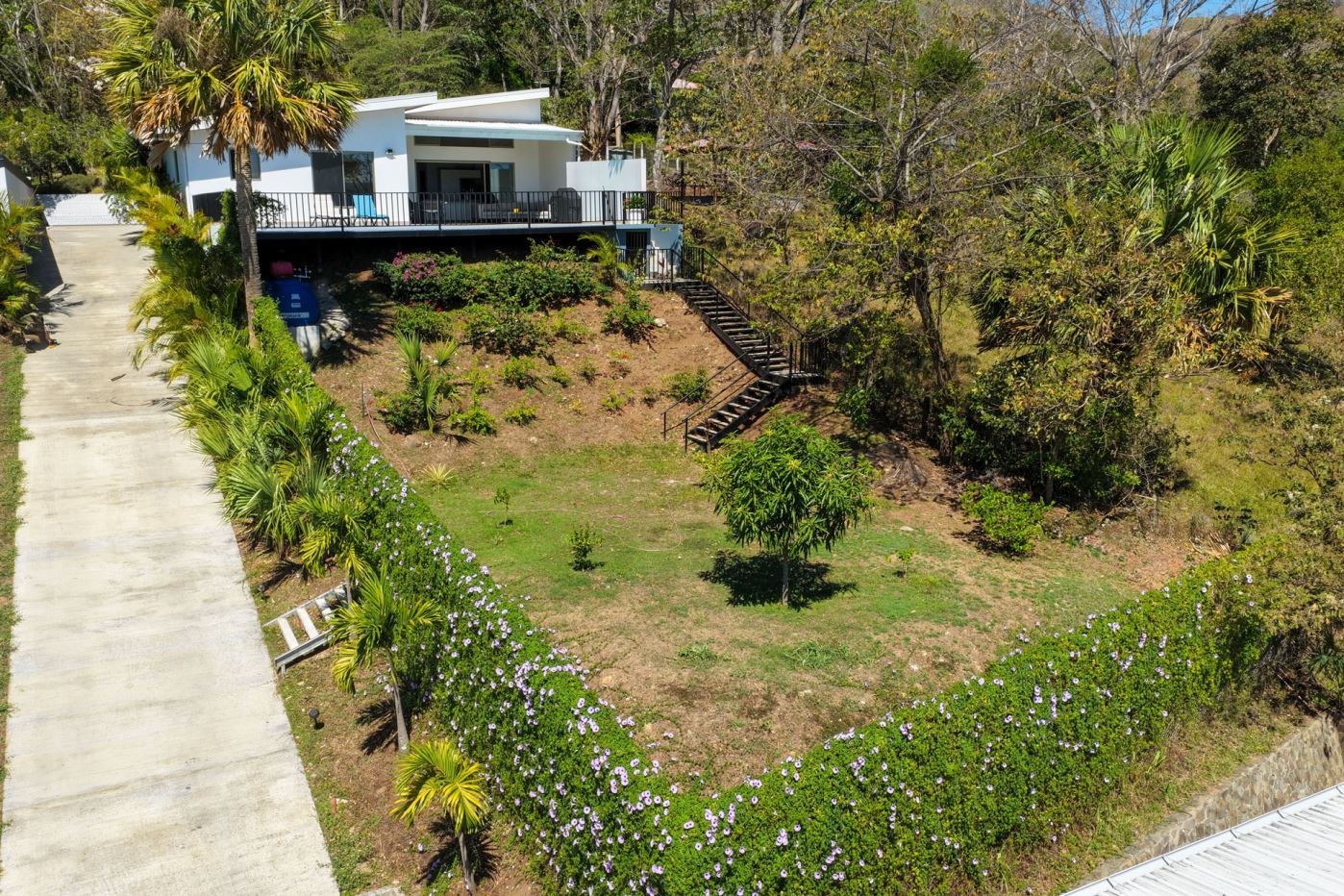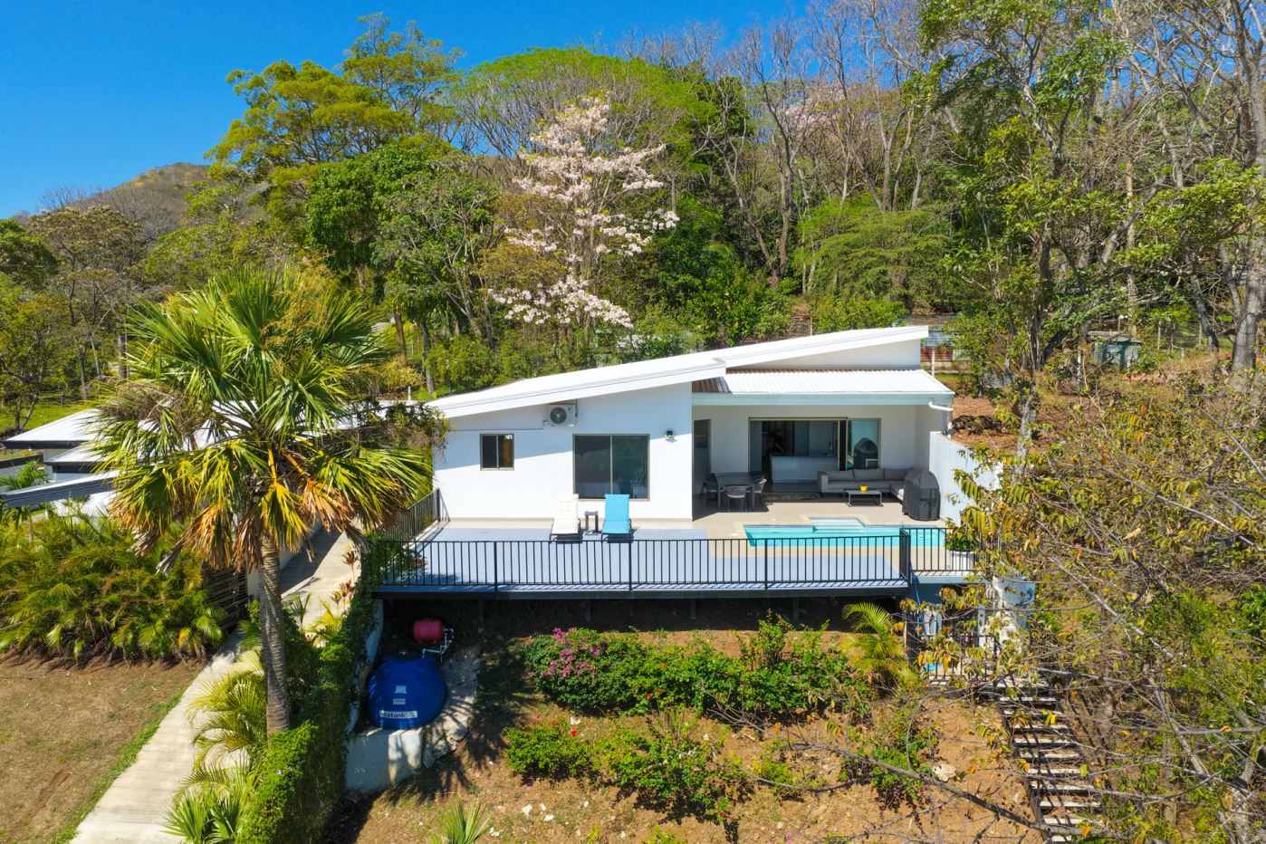 This modern-style home is located in a small four home gated community which is conveniently located to town Center and the old road and new highway going east-west.  This very well kept home is located on a small hill that overlooks the Central Valley mountains and the surrounding nature.  The home is serviced by two controlled gates with a long private driveway with plenty of front yard ideal for a large orchard or future construction with almost 1/4 acre (998m2 of land).  The formal entry leads to a lovely decorated living and dinig room that leads way to a large modern-style kitchen with a large sliding glass door that leads to the added outside living and eating areas ideal for outside living.  The extra large deck is ideal for entertaining a crowd.  The nicely wooden artesenal ceilings ties together with the modern finishes.  On one end is a master bedroom with en suite bathroom and walk in closet.  The other side of the home leads to an inside laundy area with a guest bathroom and guest bedroom and a second guest bedroom suite with bathroom.  The home’s furnishings can be negotiated separately.