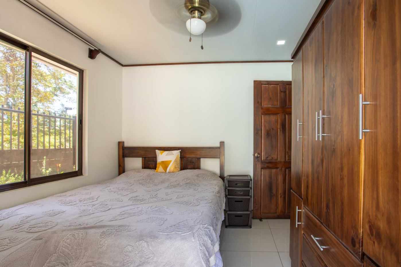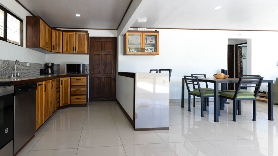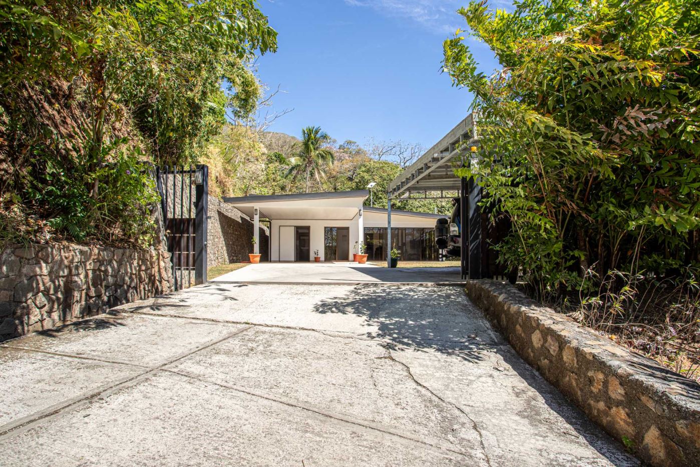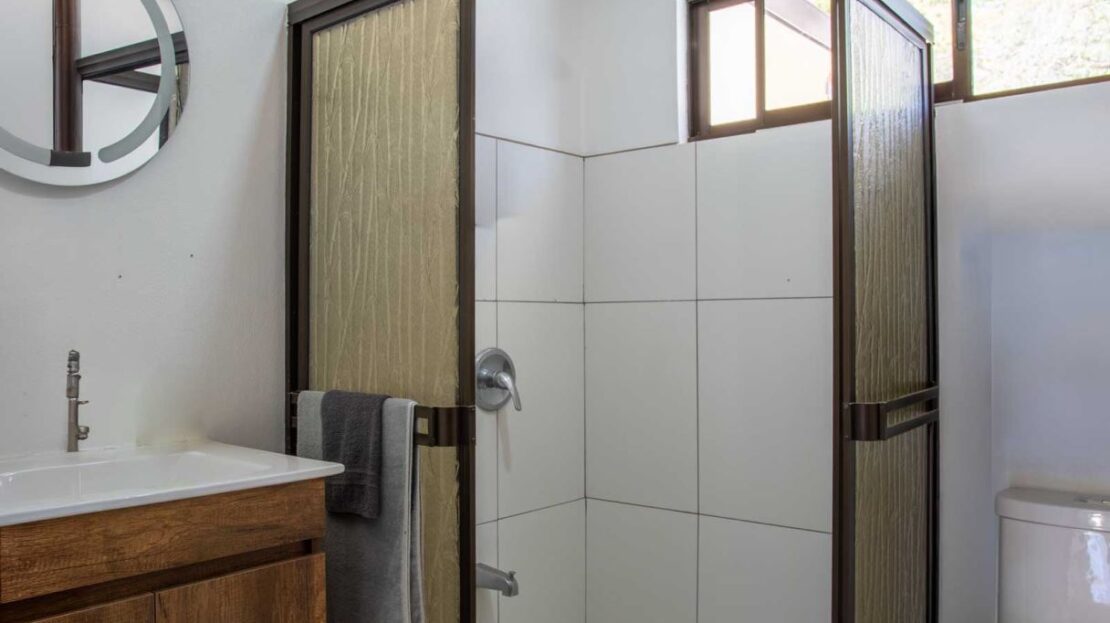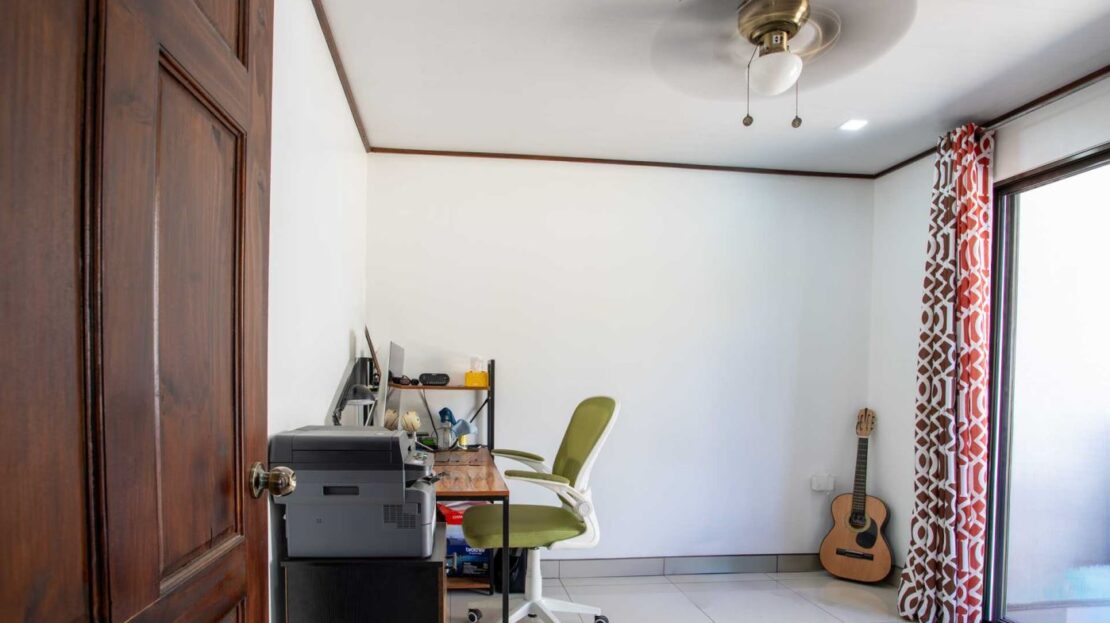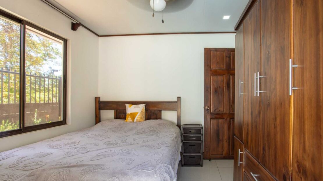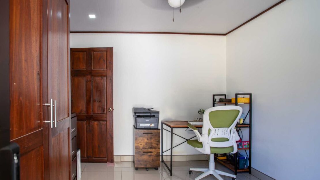 Una casa casi nueva y llave en mano se encuentra en Vistas Guacimo, ubicada a solo 10 minutos del centro de la ciudad en el pueblo de Guacimo. La casa se encuentra junto al bosque y cuenta con bonitos acabados modernos en todas partes, un entorno de piscina privada y acogedora, un área de patio y espacio adicional para algún edificio adicional o para los entusiastas de la jardinería. Un largo camino de entrada privado al que se accede por una puerta comunitaria controlada y una puerta privada da a 2 áreas de estacionamiento cubiertas, una adyacente a la casa y la otra junto a la entrada del lote con espacio para 4 autos. Este puesto de estacionamiento se puede convertir en un área porchada en el segundo piso para disfrutar de las vistas de las montañas. En el interior hay una cocina moderna con una bonita carpintería artesanal, un comedor y una sala de estar con el dormitorio principal y el baño en suite en un extremo y dos dormitorios de invitados con baño de invitados compartido en el otro. Todos los dormitorios dan paso mediante puertas corredizas al porche cubierto y al área de la piscina. Hay un almacenamiento adicional con sala de bombas de piscina. La casa se encuentra en un corredor natural y desde la propiedad se pueden observar diversos animales, como monos, tucanes y otras aves.