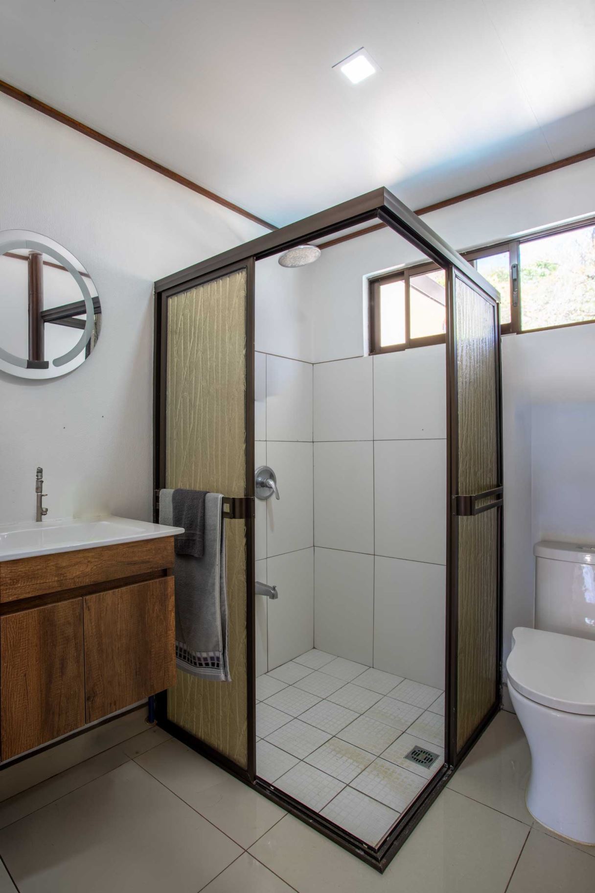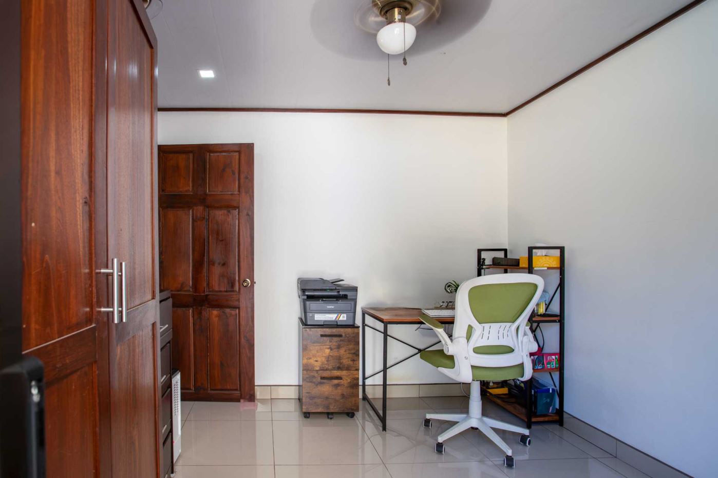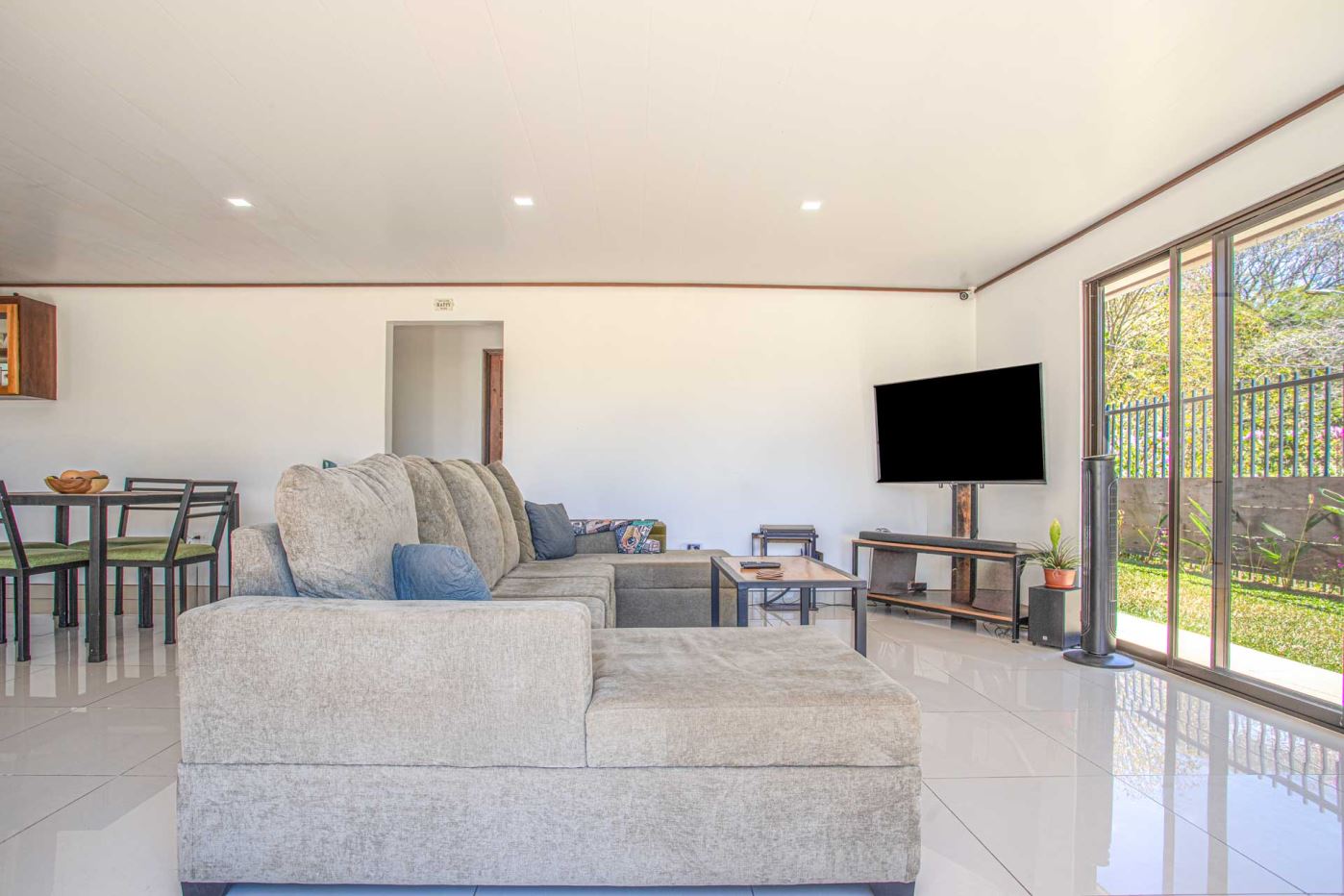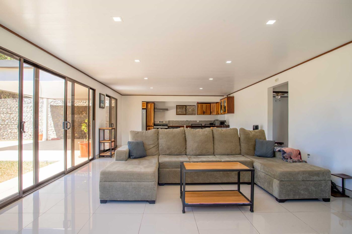 Una casa casi nueva y llave en mano se encuentra en Vistas Guacimo, ubicada a solo 10 minutos del centro de la ciudad en el pueblo de Guacimo. La casa se encuentra junto al bosque y cuenta con bonitos acabados modernos en todas partes, un entorno de piscina privada y acogedora, un área de patio y espacio adicional para algún edificio adicional o para los entusiastas de la jardinería. Un largo camino de entrada privado al que se accede por una puerta comunitaria controlada y una puerta privada da a 2 áreas de estacionamiento cubiertas, una adyacente a la casa y la otra junto a la entrada del lote con espacio para 4 autos. Este puesto de estacionamiento se puede convertir en un área porchada en el segundo piso para disfrutar de las vistas de las montañas. En el interior hay una cocina moderna con una bonita carpintería artesanal, un comedor y una sala de estar con el dormitorio principal y el baño en suite en un extremo y dos dormitorios de invitados con baño de invitados compartido en el otro. Todos los dormitorios dan paso mediante puertas corredizas al porche cubierto y al área de la piscina. Hay un almacenamiento adicional con sala de bombas de piscina. La casa se encuentra en un corredor natural y desde la propiedad se pueden observar diversos animales, como monos, tucanes y otras aves.