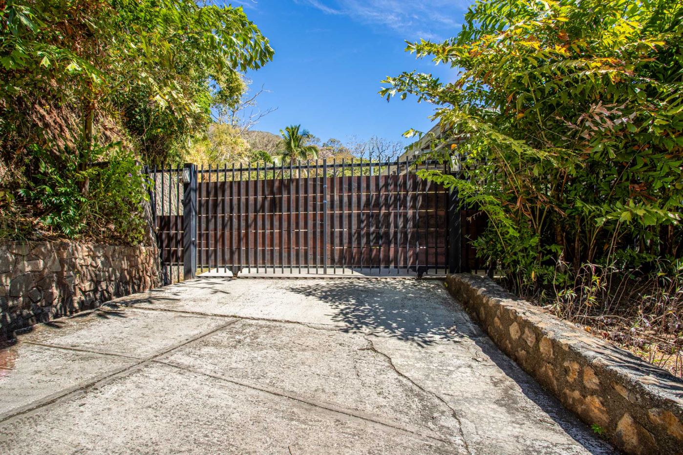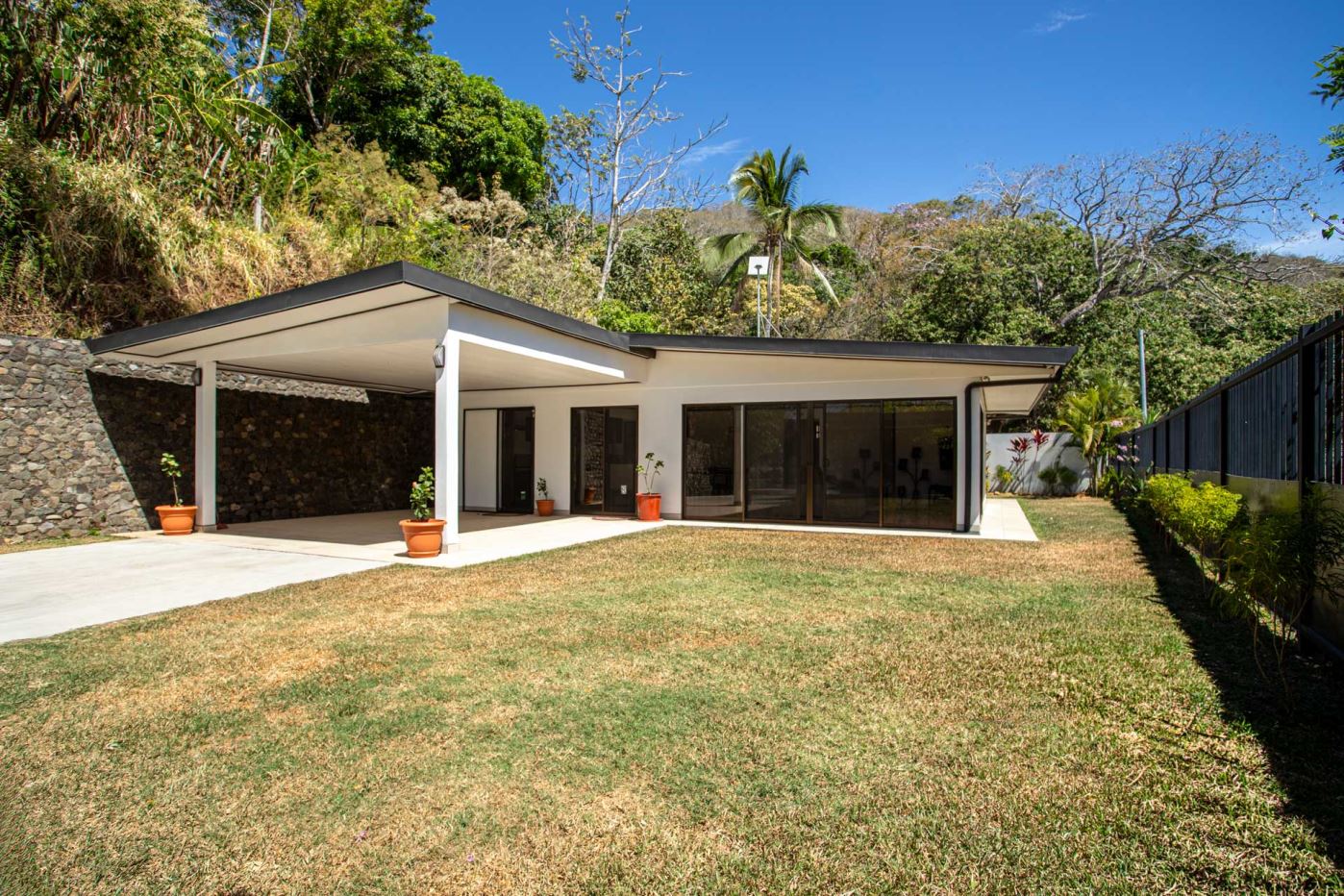 An almost brand new and turnkey home is located in Vistas Guacimo, located just 10 minutes from town center in the village of Guacimo. The home sits adjacent to the forest and features nice modern finishes throughout, a private inviting pool setting and yard area and added space for some added building or for the gardening enthusiast. A long private driveway accessed by a controlled community gate and a private gate gives was to 2 covered parking areas, one adjacent the home and the other next to the entrance of the lot with room for 4 cars. This parking stall can be converted into a second story porched area to take in the area views of the mountains. Inside there is a modern kitchen with nice artesenal woodwork thoroughout, a dining and living room area with the master bedroom and bathroom suite on one end and two guest bedrooms with shared guest bathroom on the other. All bedrooms give way by sliding doors to the covered porch and pool area. There is an added storage with pool pump room. The area the home sits in a natural corrider and many types of animals can be seen from the property including monkeys, toucans and other types of birds.