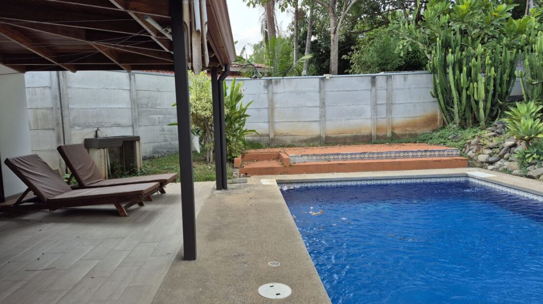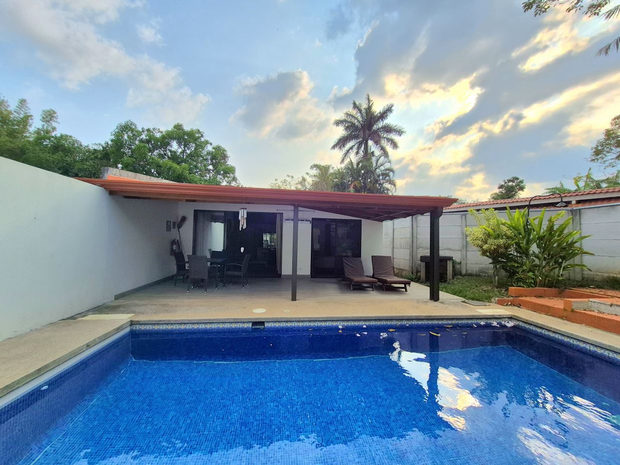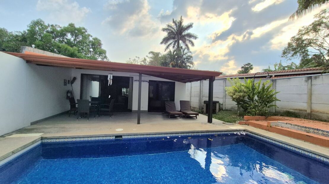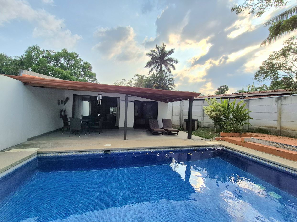 Esta casa de dos habitaciones con piscina privada está ubicada en una comunidad cerrada bastante cerca del centro, a 5 minutos en automóvil de supermercados, gasolineras, tiendas y más.La casa es completamente nueva y cuenta con aire acondicionado en la habitación principal y en la sala de estar. Ventiladores de techo en el resto de la casa. Es la ultima de tres casas similares pero tiene su propia privacidad y piscina.El alquiler no incluye: Electricidad, internet fibra óptica y agua.