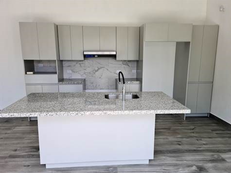 The designs features tall ceilings with plenty of windows with lots of light. A large living-dining room gives way to an ample modern kitchen with cabinetry and granite island. There is a large master bedroom with on suite bathroom with two added guest rooms and a full and half bathroom. Outside one finds a large inviting terrace with a 4 person jacuzzi spa surrounded by nicely kept gardens. All kept within a very secure and private perimeter with a large electric gate and plenty area for parking. Added features include a home alarm and security intercom system.