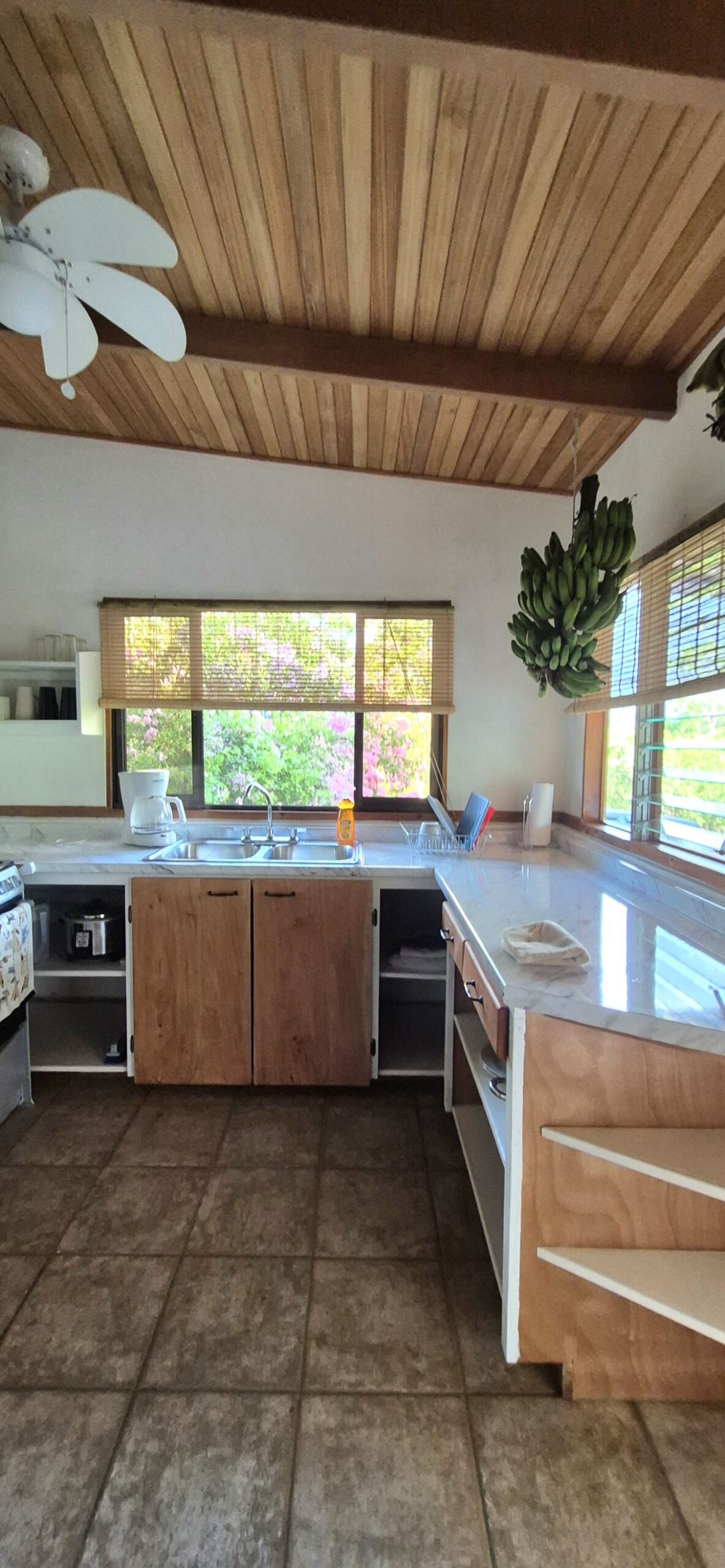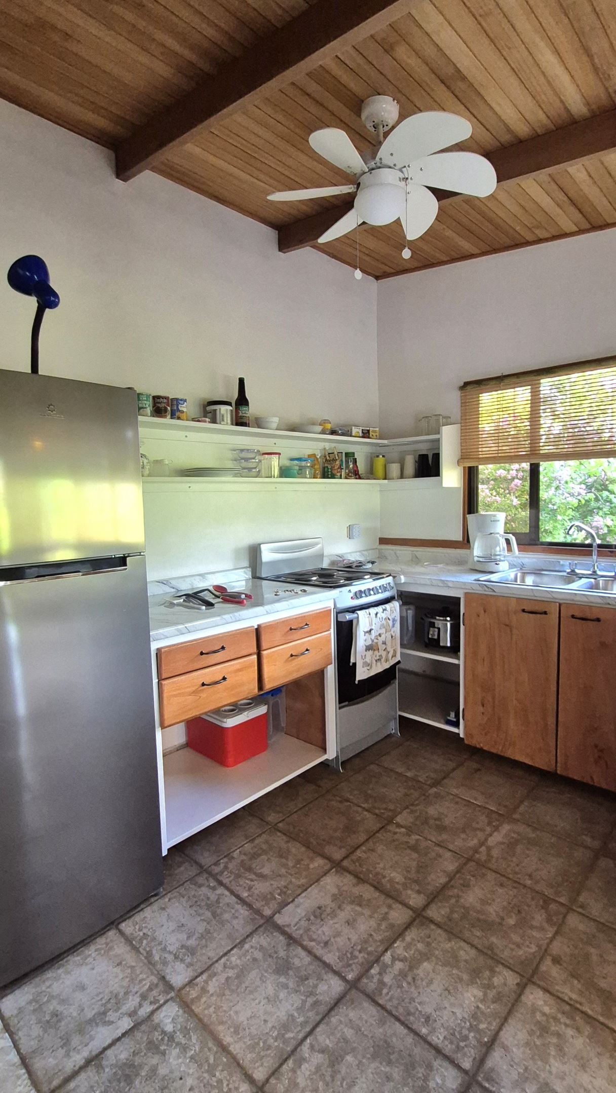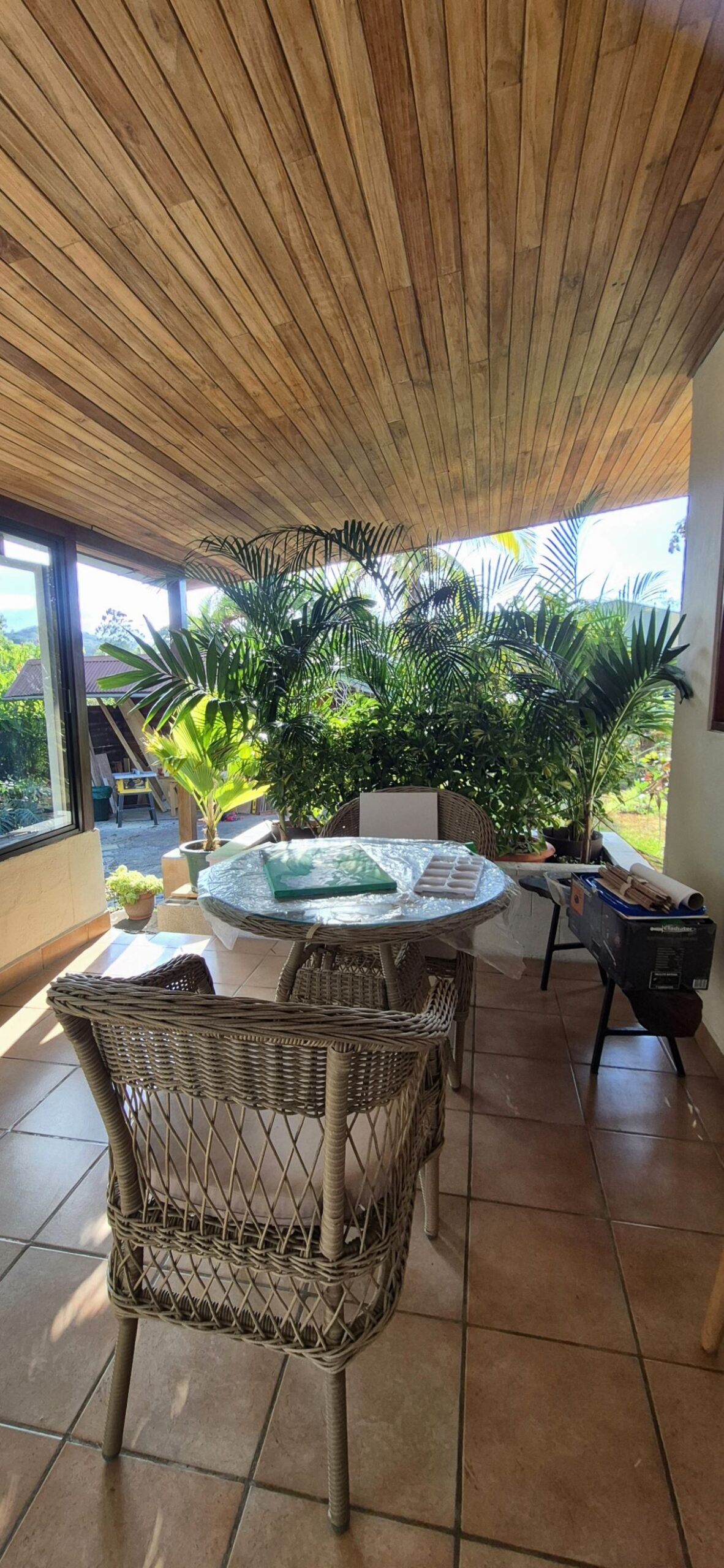 3 BR – 2 BA house and casita for rent in Atenas, Costa RicaAvailable April 15, 2026 – November 15, 2026 (possibly longer) $1800 per monthConveniently located living spaces – less than 3 km to “downtown” Atenas (whichclaims to have “the worlds’ most perfect climate!” Average daily temps between65F and 85F all year make both heating and air conditioning unnecessary!) – 3bedrooms, 2 full baths with generous walk-in tiled showers, 2 living rooms, 2 fullkitchens, and three separate “ranchos” (outdoor living spaces that are protectedfrom rain.) total approx. 1800 sq ft.The main house has two bedrooms (queen mattresses) with the most private andintimate rancho (9’ x 11’) opening directly off the master bedroom. A cozy guestbedroom, full bath with shower, lots of living space, and a full kitchen make up therest of the main house.Directly behind the kitchen of the main house is the largest of the three ranchos –(15’ x 18.’) A covered walkway leads from there to the smallest of the threeranchos (11’ x 13’) directly off the kitchen of the casita. The casita rancho hasdelightful views of forested hills to the south. To the east, the view is through theback portion of the property, and at night, you can see the sprawling lights ofAlajuela and other suburbs on the floor of the Central Valley.The house and casita are situated near the front of a narrow but deep property –almost 4 acres – which is mostly covered in coffee, banana, plantain, avocado,mango, and tangerine trees, and largely shaded by much bigger trees, so walkingthrough it feels like walking in a park. The main trail leads 800’ down a gentleslope to the confluence of a small river (which flows all year) and a smaller creekwhich, during the rainy season, cascades down 20’ of tumbled rock making a smallwaterfall. At the far end of the trail, closest to the river and the waterfall, ameditation bench awaits your contemplative visits.Solar heated hot water is provided to both the main house and casita. Rentincludes internet and all other utilities as well as bi-monthly cleaning service andtwice-weekly visits by a gardener who will water all the plants. A laundry roomwith north-American style washer and electric dryer is conveniently located off themain rancho between the house and the casita.Atenas is often cited as one of the most popular of all destinations for expatsmoving to – or considering – a more permanent life in Costa Rica. There are threefactors: “The world’s most perfect climate,” easy access (to “big city” offerings inSan Jose, Pacific beaches, and the international airport,) and a wonderfullywelcoming “pura vida” vibe from the locals.
