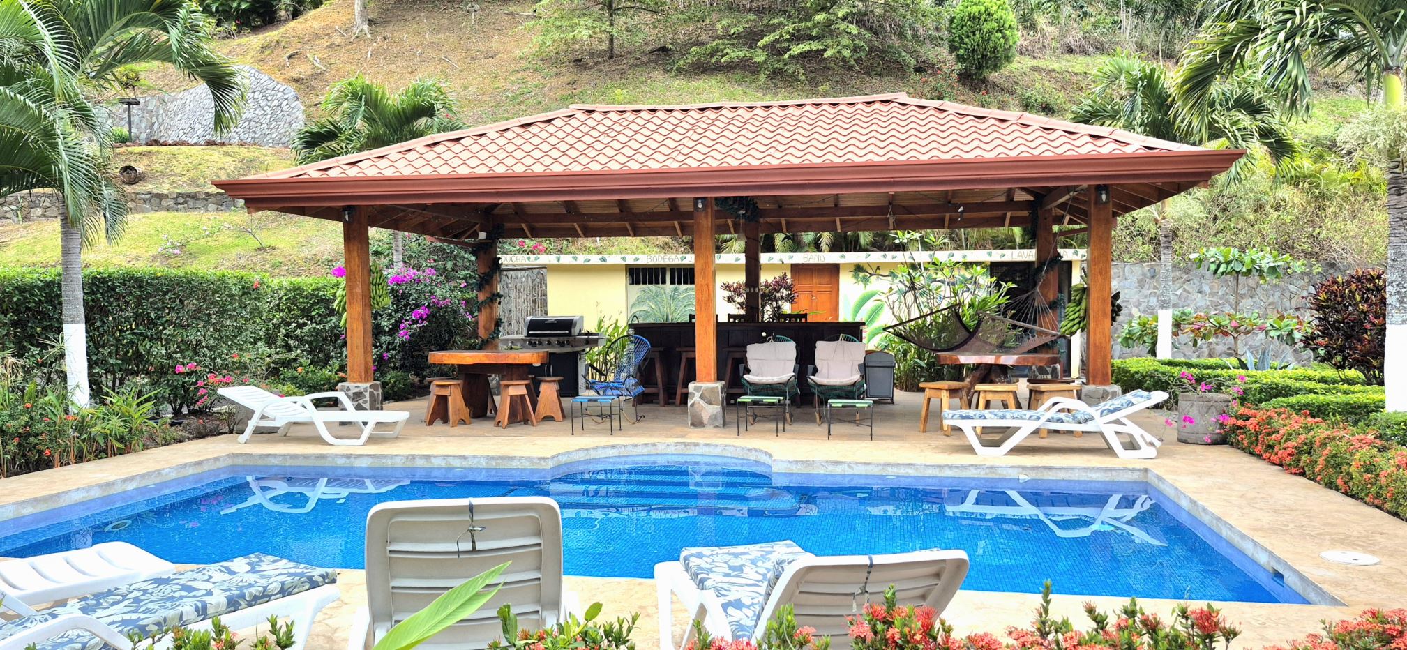 Lovely multi-unit rental property ideal for any venture located in Roca Verde, Atenas’ most popular and town centered community.  There is a main inviting community pool area and large covered rancho area at the center of the property bathroom and changing room.The property is landscaped throughout with a variety of fruit trees, ornamental plants and trees and over 1000 coffee plants, more than enough to generate coffee for the consumption of the property. There is plenty of space to add onto and privacy between all units.