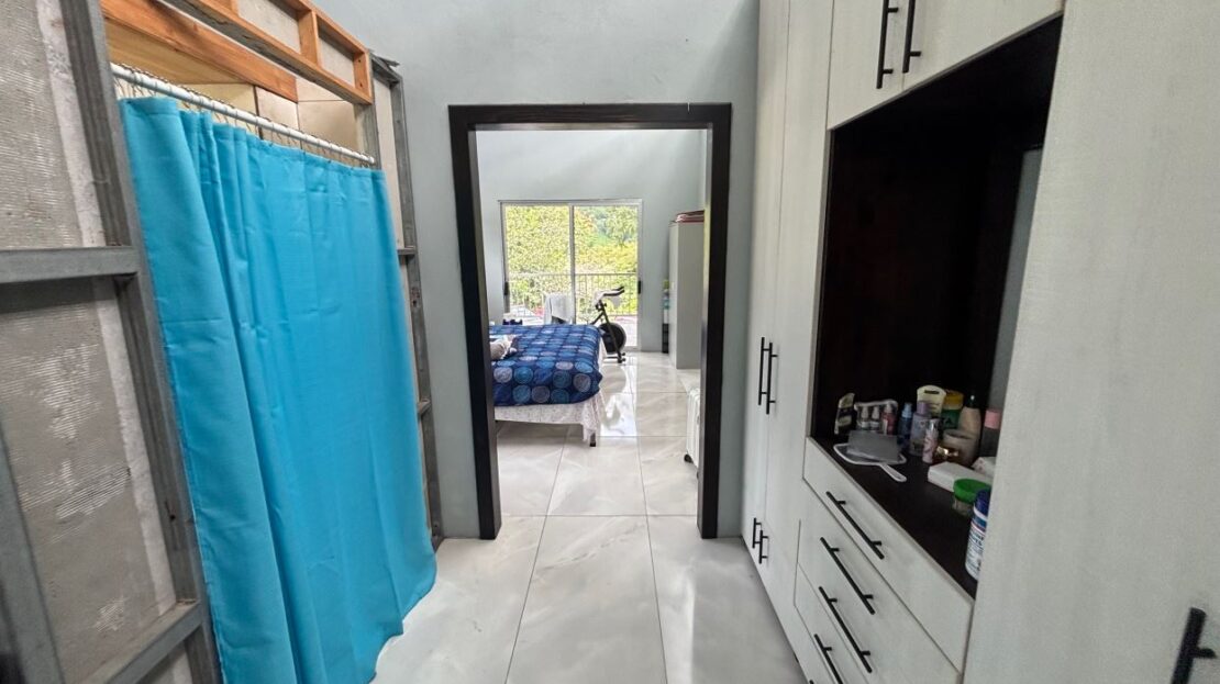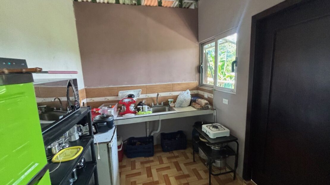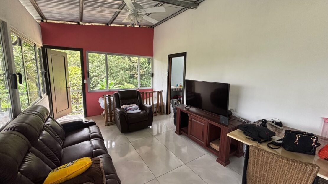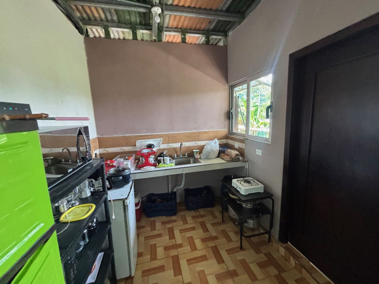 Farm like property with 2 homes near stream in Desmonte located about 20 minutes from Atenas Center and 20 minutes from Orotina in a natural setting on the old ox cart road leading to the Pacific. The main newer homes is partially complete with 2 stories with an upstairs modern apartment and downstairs partially completed 2 1 Bd/1Bth apartments. The older adjacent home would be ideal for a future remodel. The 65,990m2 (16 acres) has plenty of land for added structures or for a peronal farm with the top part having great views of the area mountains. On the east side of the property a clean stream passes adjacent to the property.